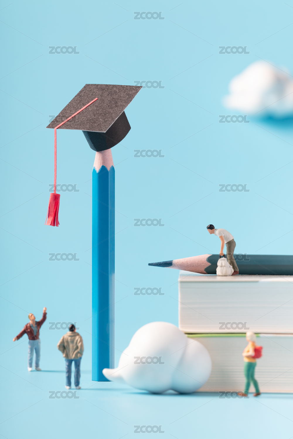 微缩创意学位帽与人群