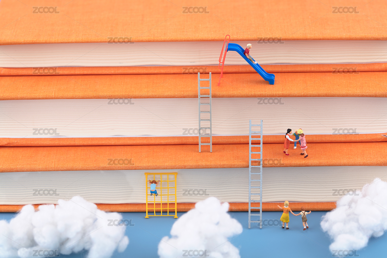 微缩创意书本梯子和可爱的孩子