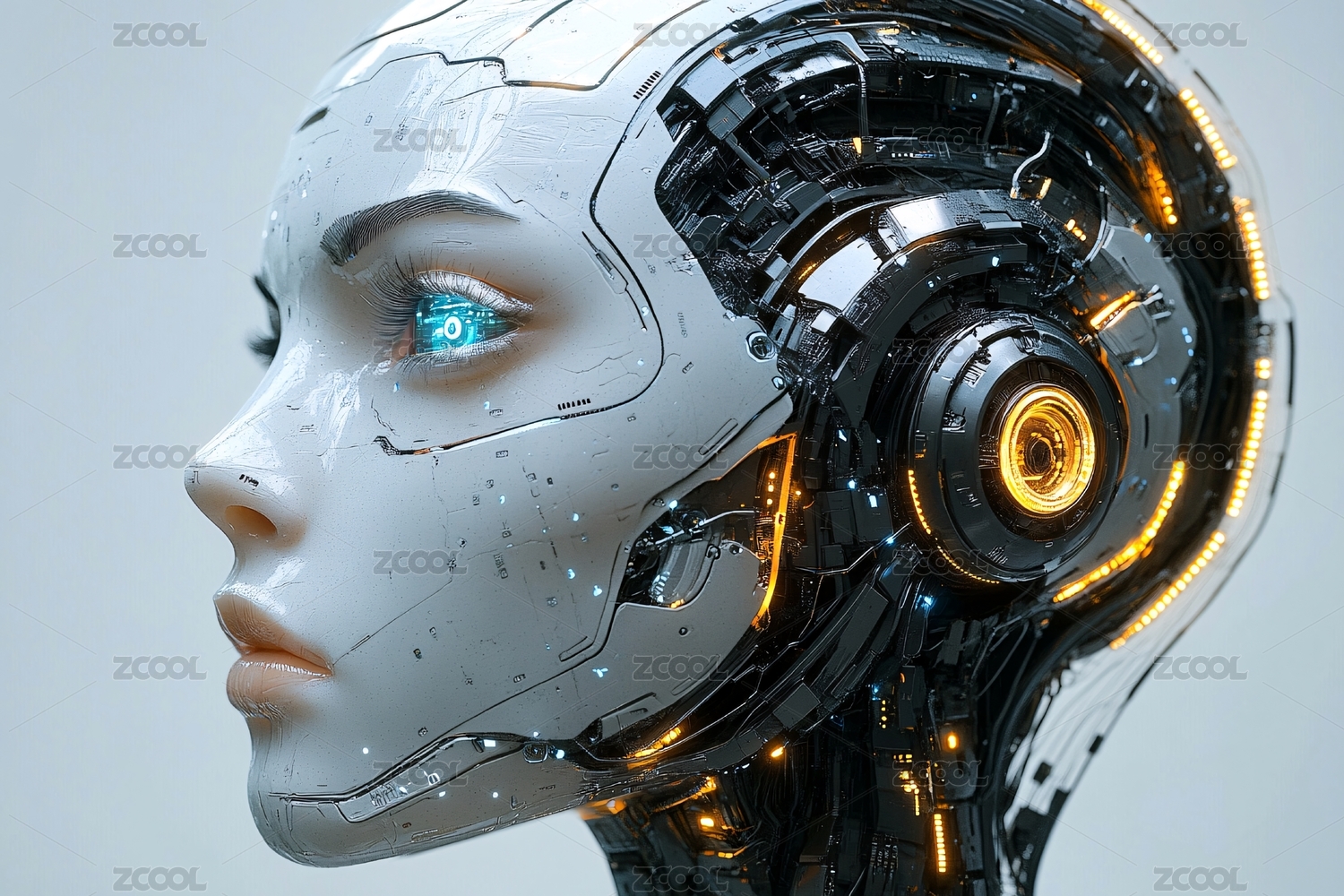 未来科技感十足的机械女郎肖像
