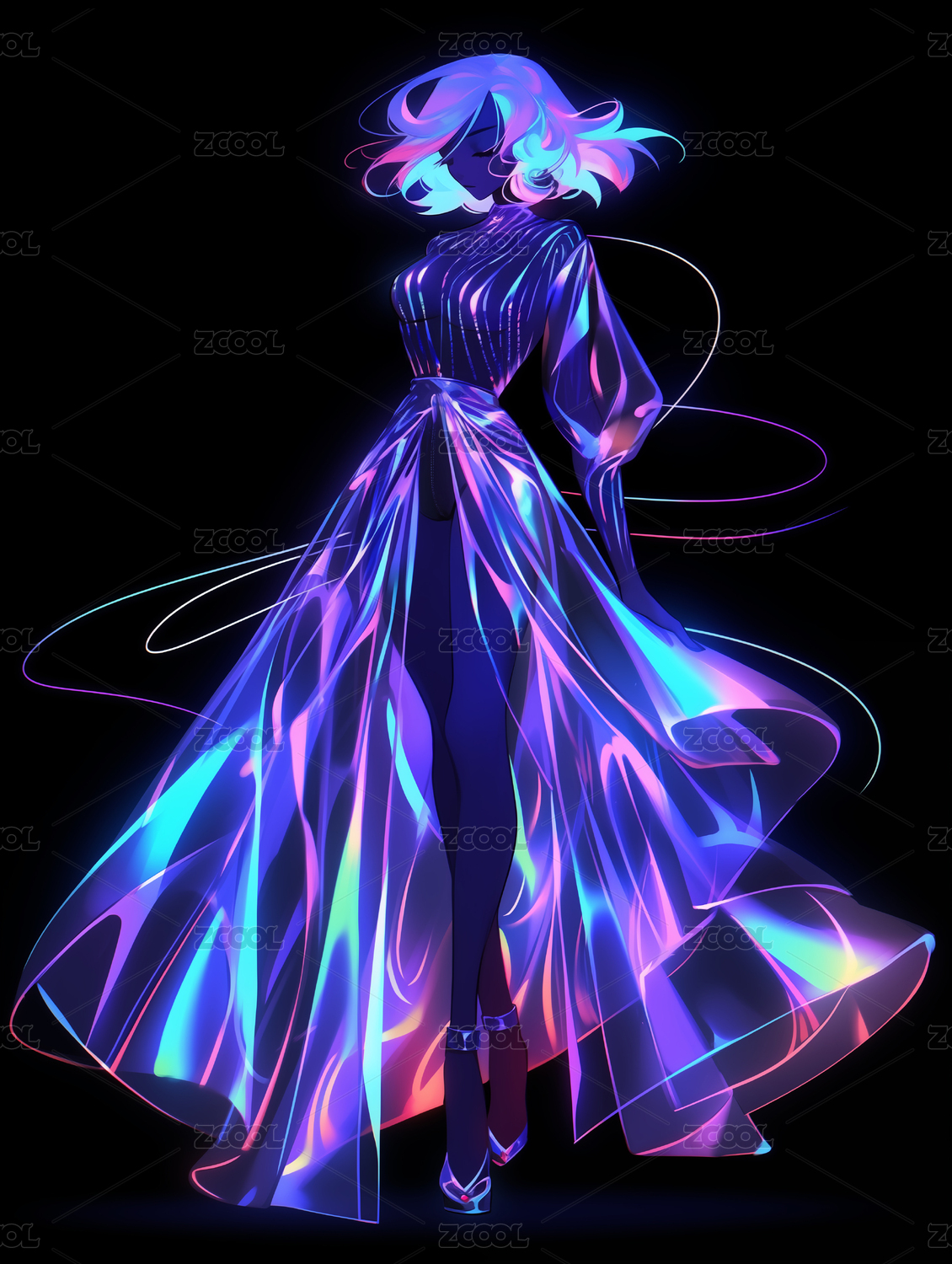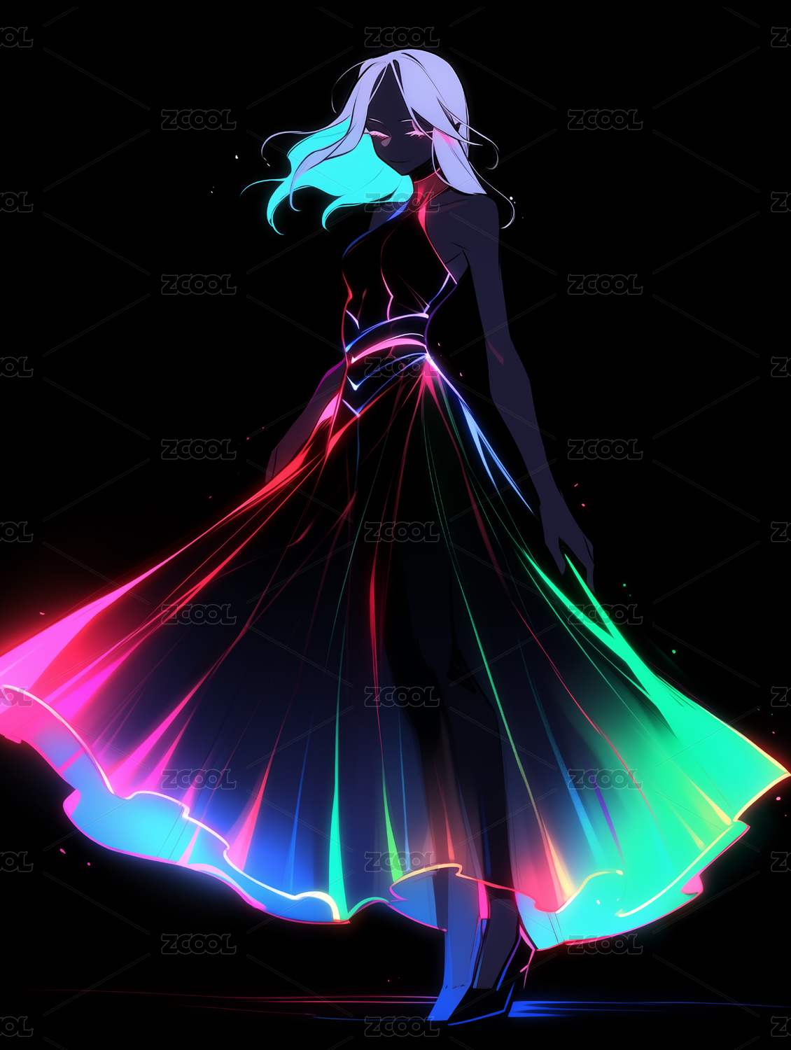 荧光,色彩,裙装,女性,女人,插画,创意,设计,新潮,舞蹈