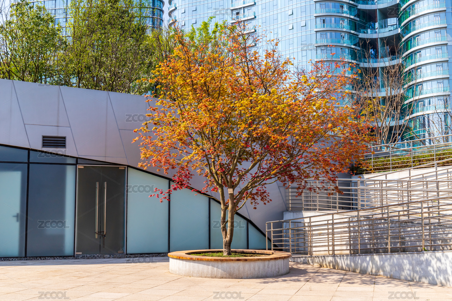 室外现代建筑与地面