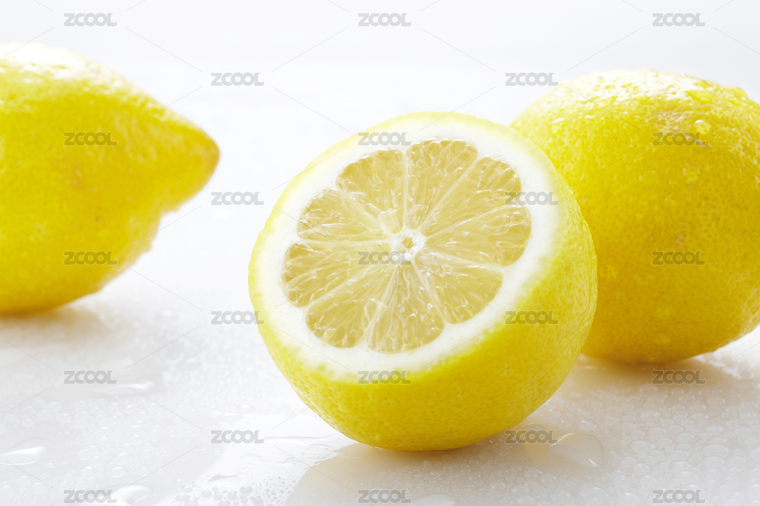 白底上放着一堆四川安岳黄柠檬和切片柠檬