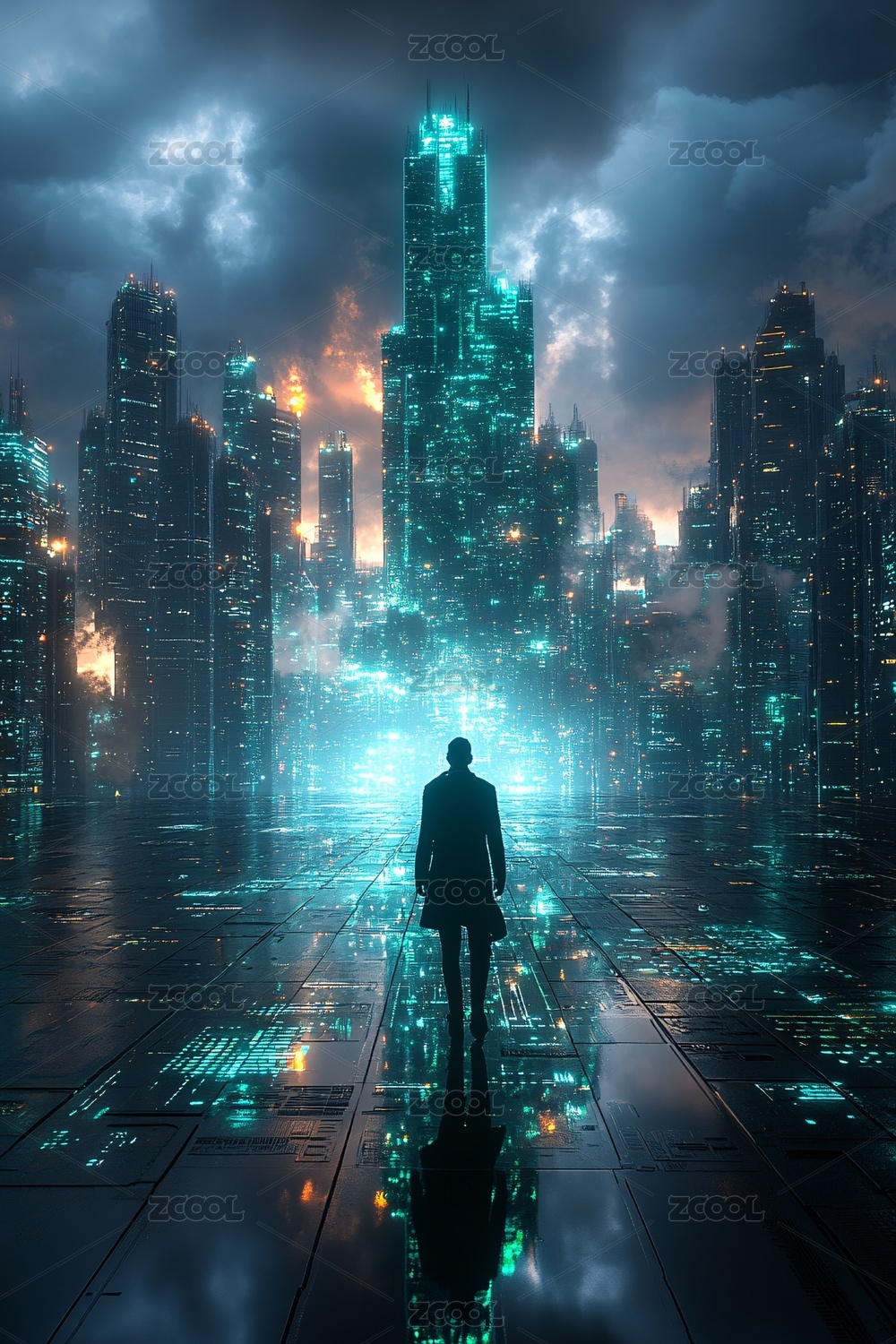 未来城市建筑高楼大厦科技人物梦幻唯美场景