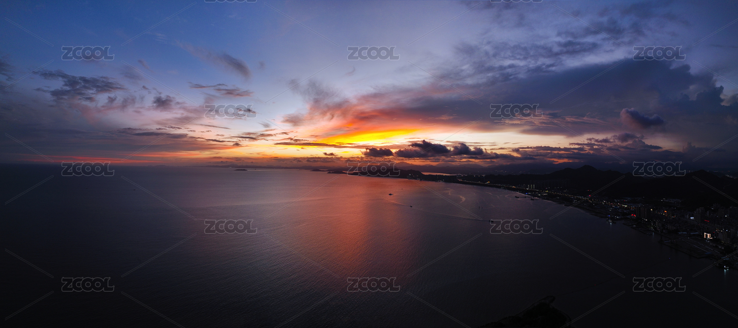 惠州市惠东县港口镇大星山双月湾夕阳航拍