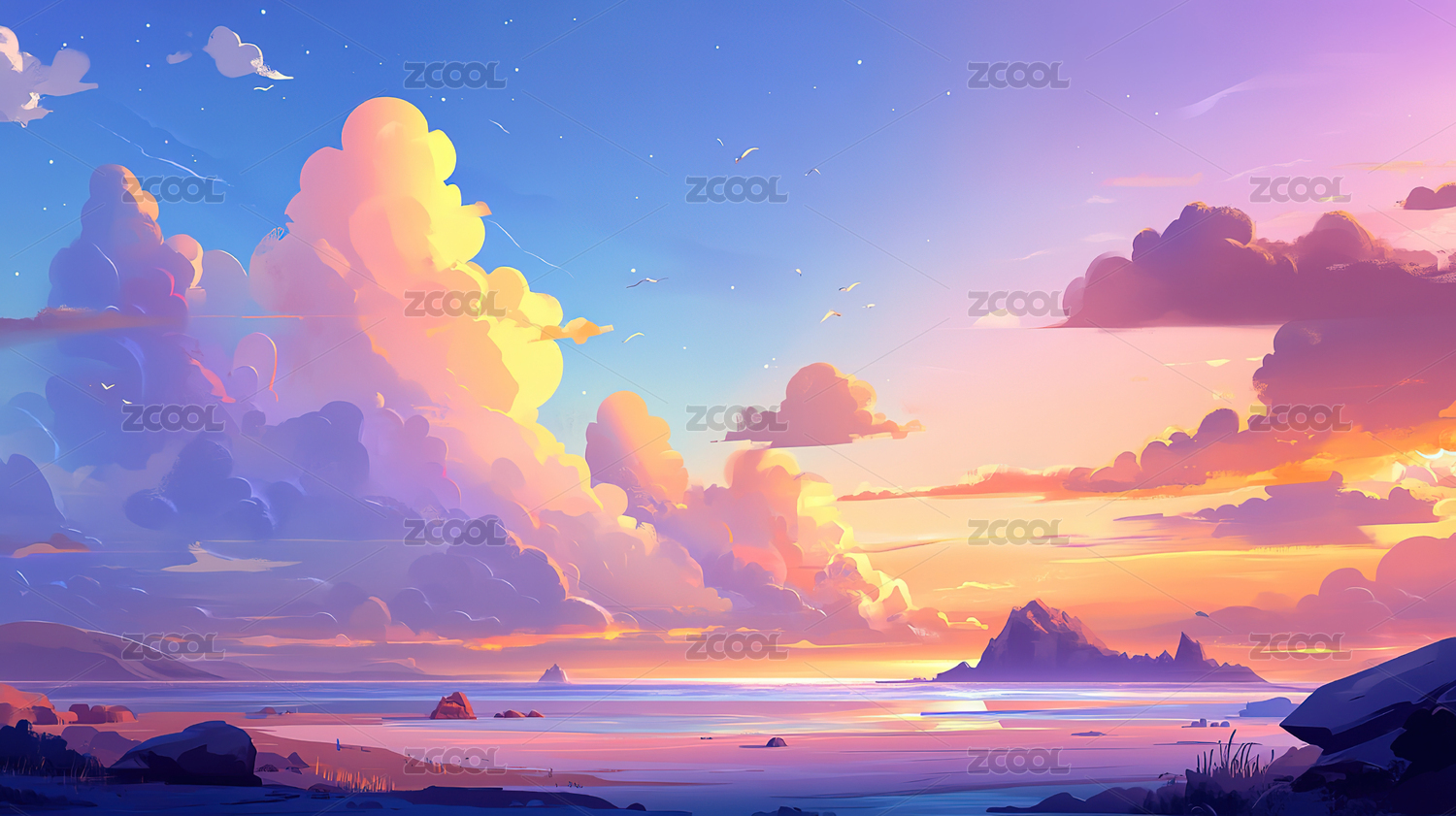 海岸,沙滩,树木,山峦,云朵,天空,海洋,风景,自然,美丽