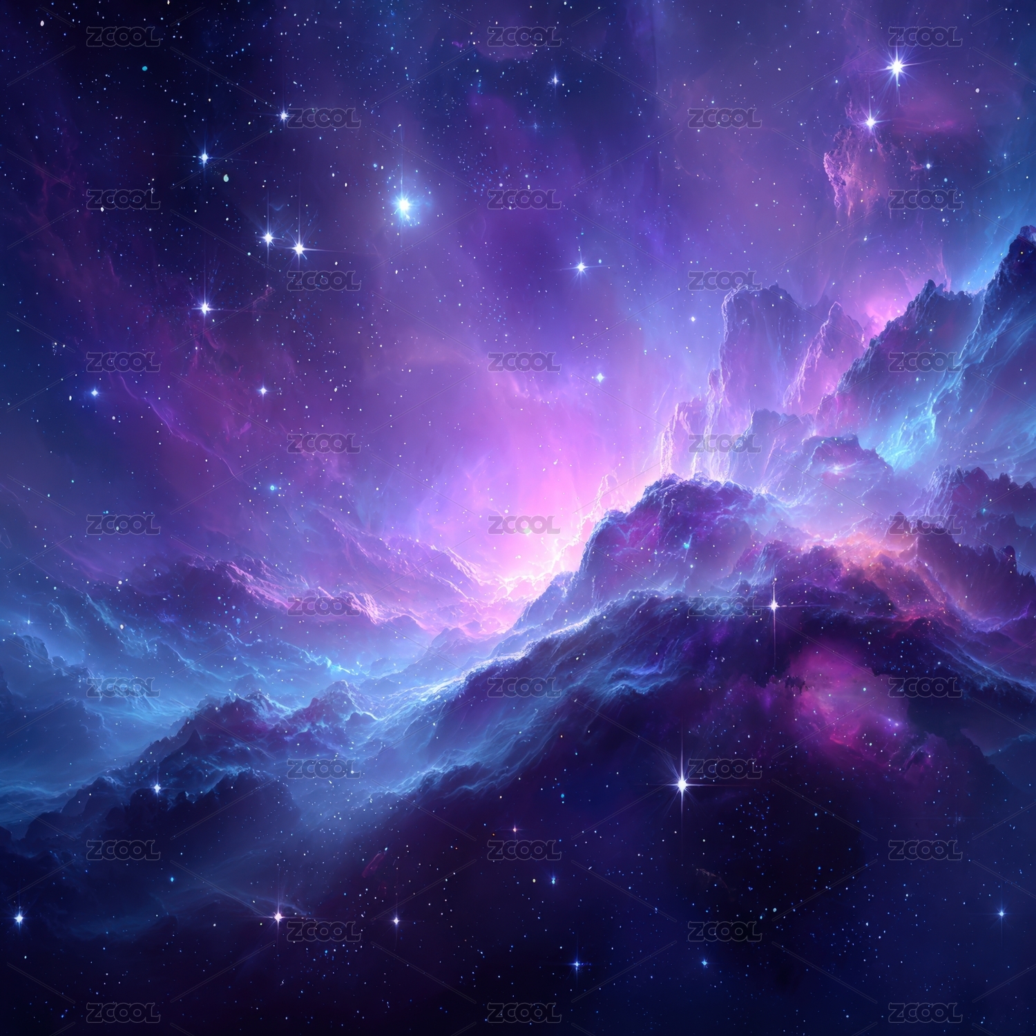 星云,星星,山峰,云海,夜空,光辉,宇宙,梦幻,蓝色,红色