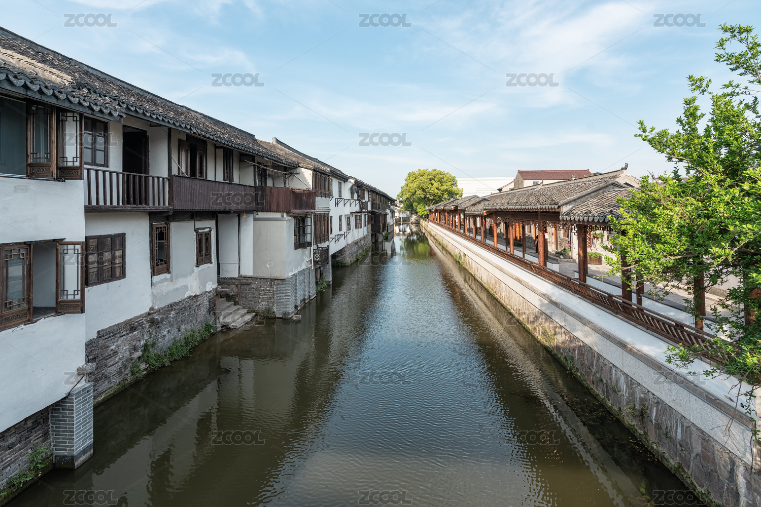 夏天中国江南水乡的古建筑与河流