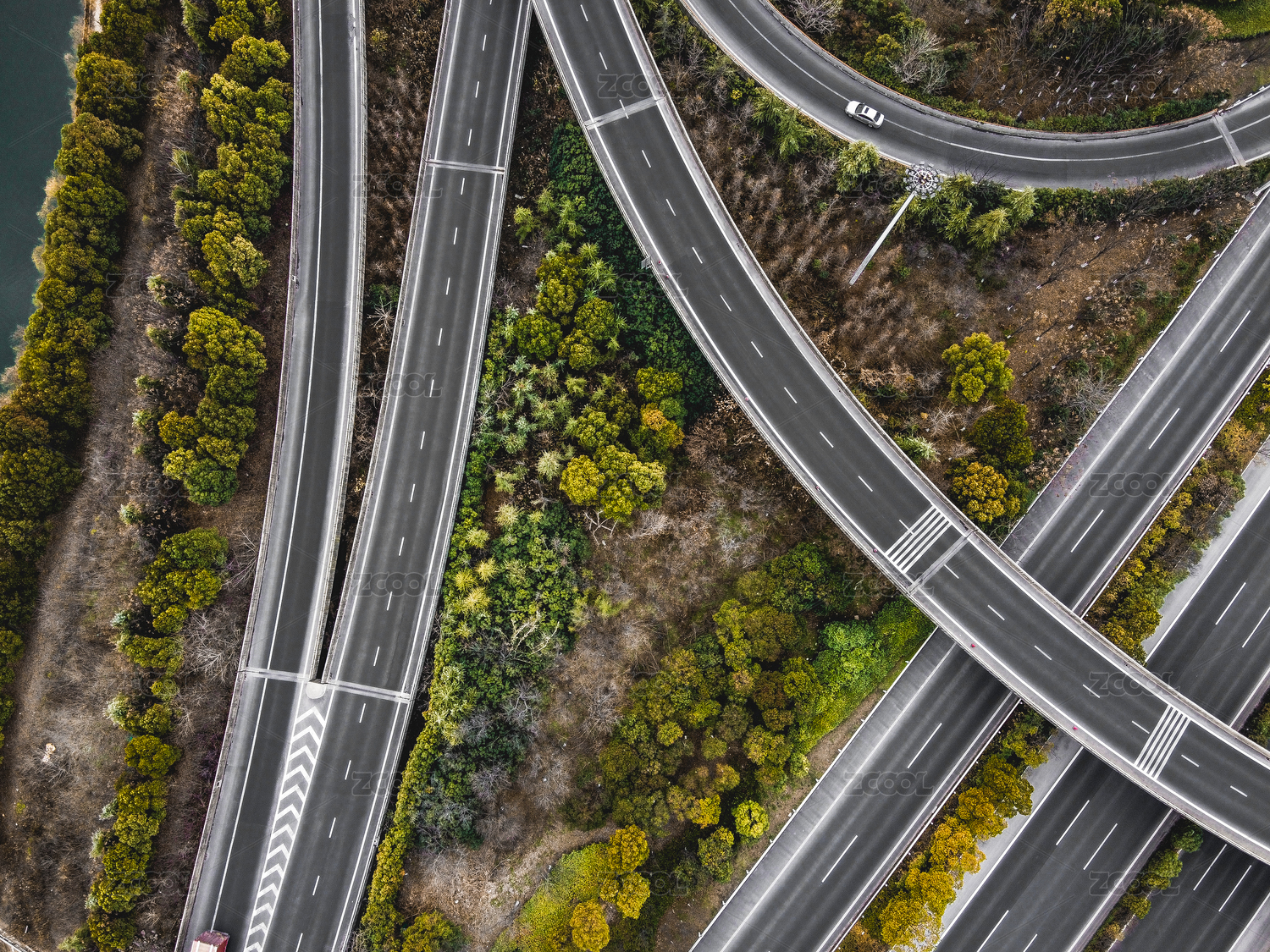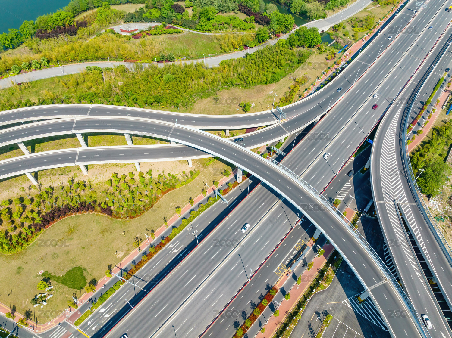 高速公路枢纽带有绿色植物局部照片