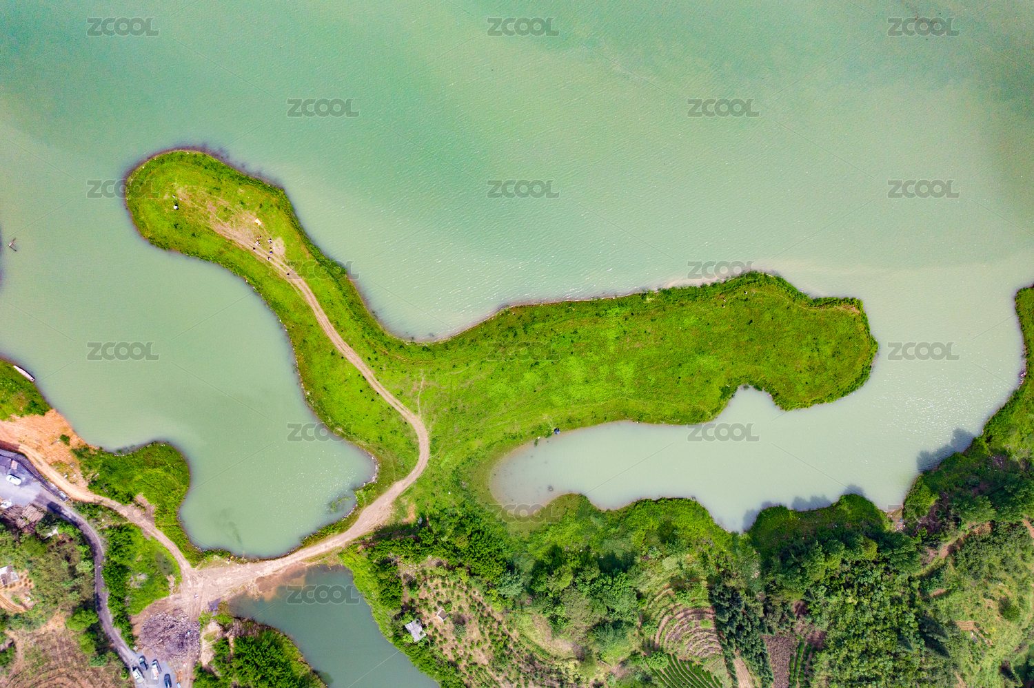 航拍武汉东湖景区后湖线团山驿站湖中林荫路