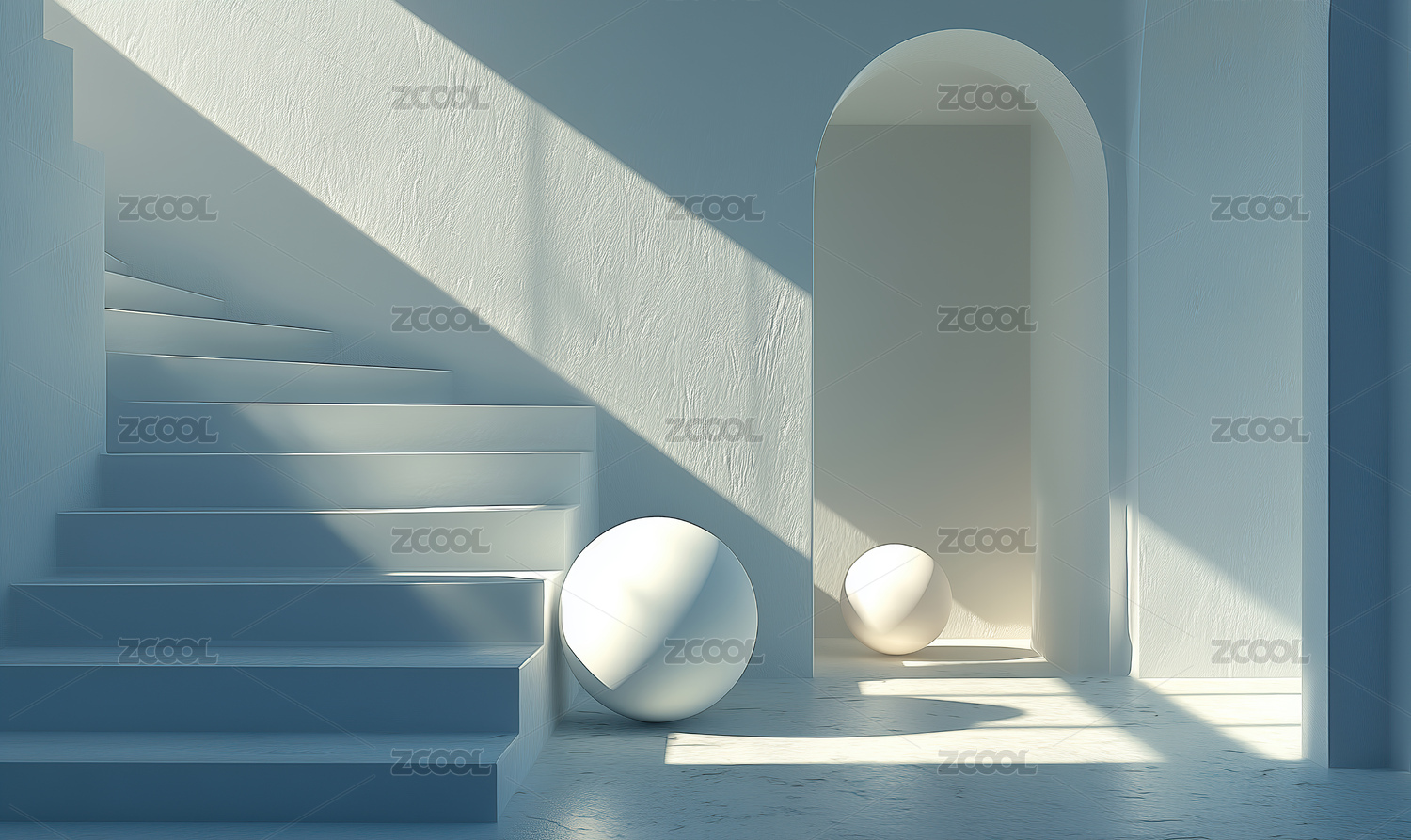 极简,设计,海报,冰蓝色,背景,圆形,台阶,球体,柔和,光线