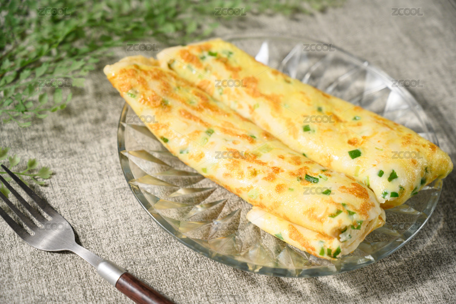 桌面上的盘子里的美味可口的煎鸡蛋饼