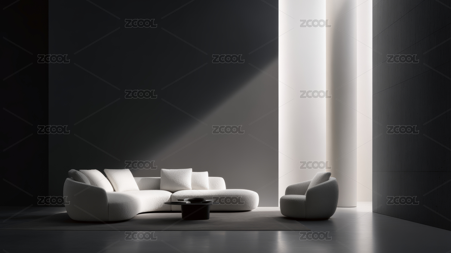 客厅内白色沙发圆形地毯盆栽空场景设计