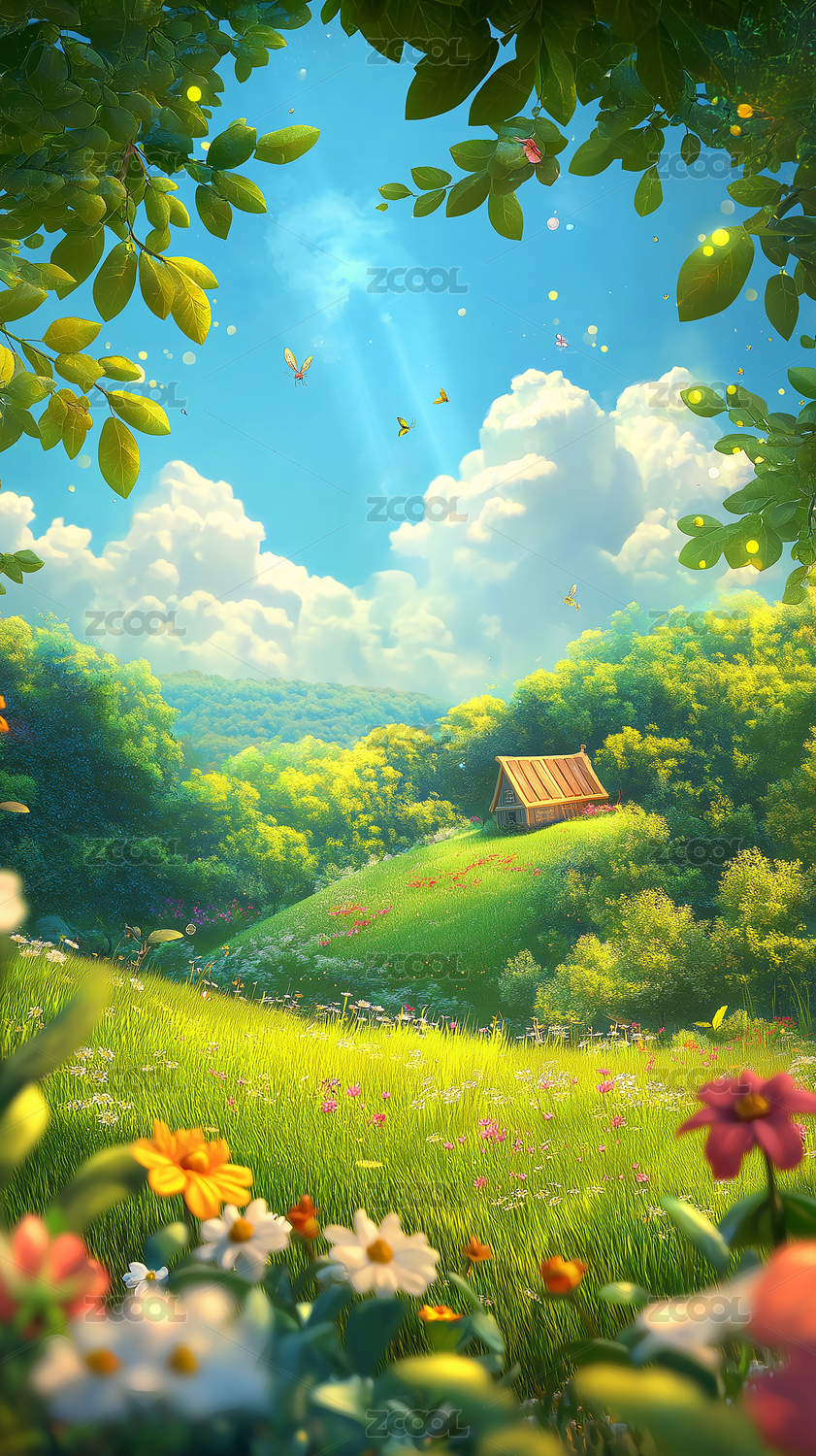 卡通风格草地风景高清摄影