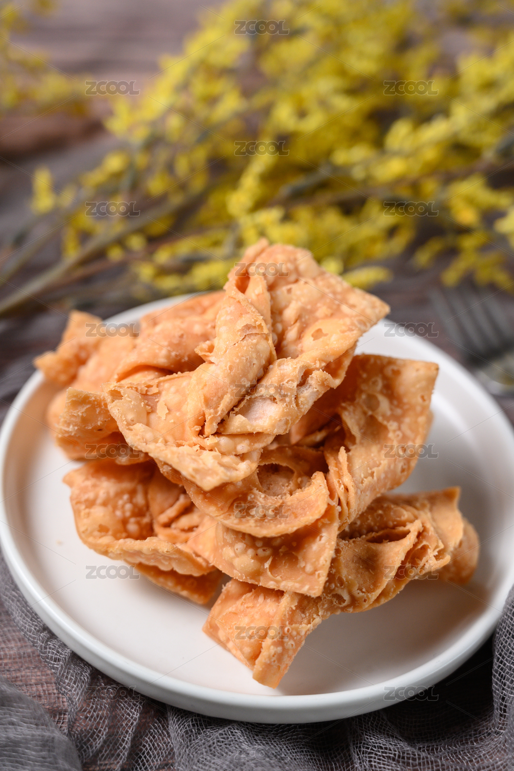桌面上的盘子里的美味可口的麻叶子