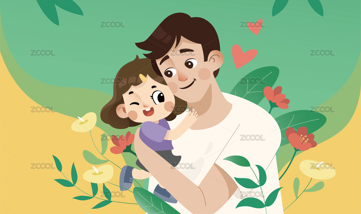 父亲节父女相拥矢量插画海报