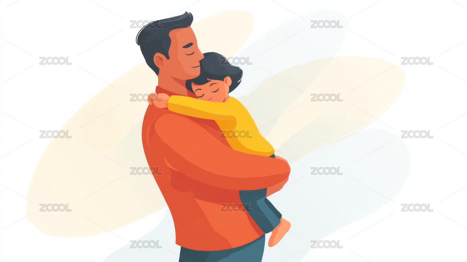 爸爸抱着熟睡婴儿的父亲节插画植物横版白底