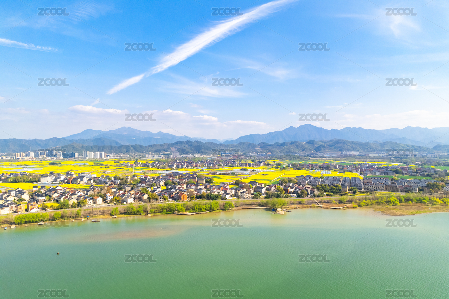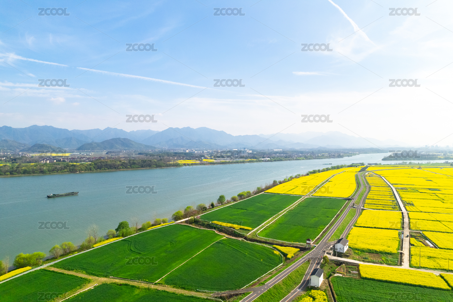 杭州富阳富春江包家淇春天乡村田园油菜花