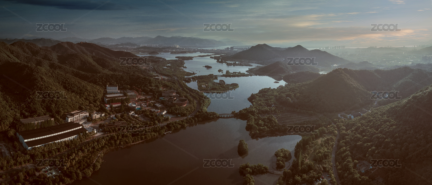 珠海斗门林业山脉连绵山峰水库航拍全景图