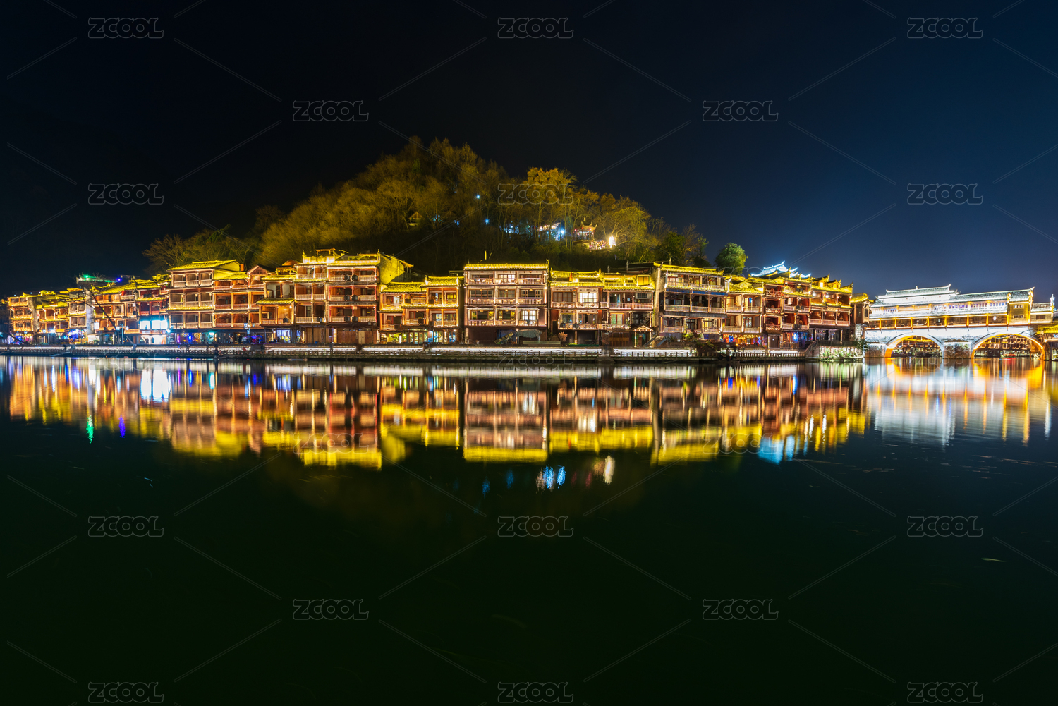 中国湖南湘西凤凰古城漂亮的夜景风光