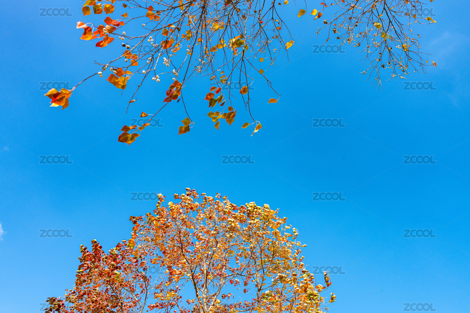 蓝天下黄色的树冠