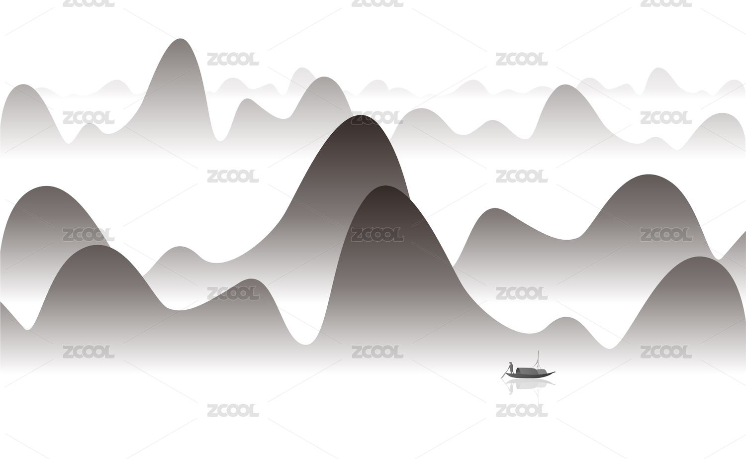 矢量新中式山水画