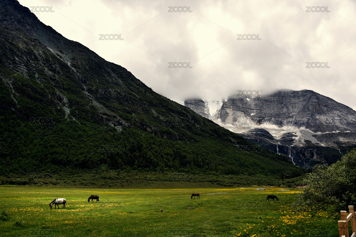 雪山牧场与马群