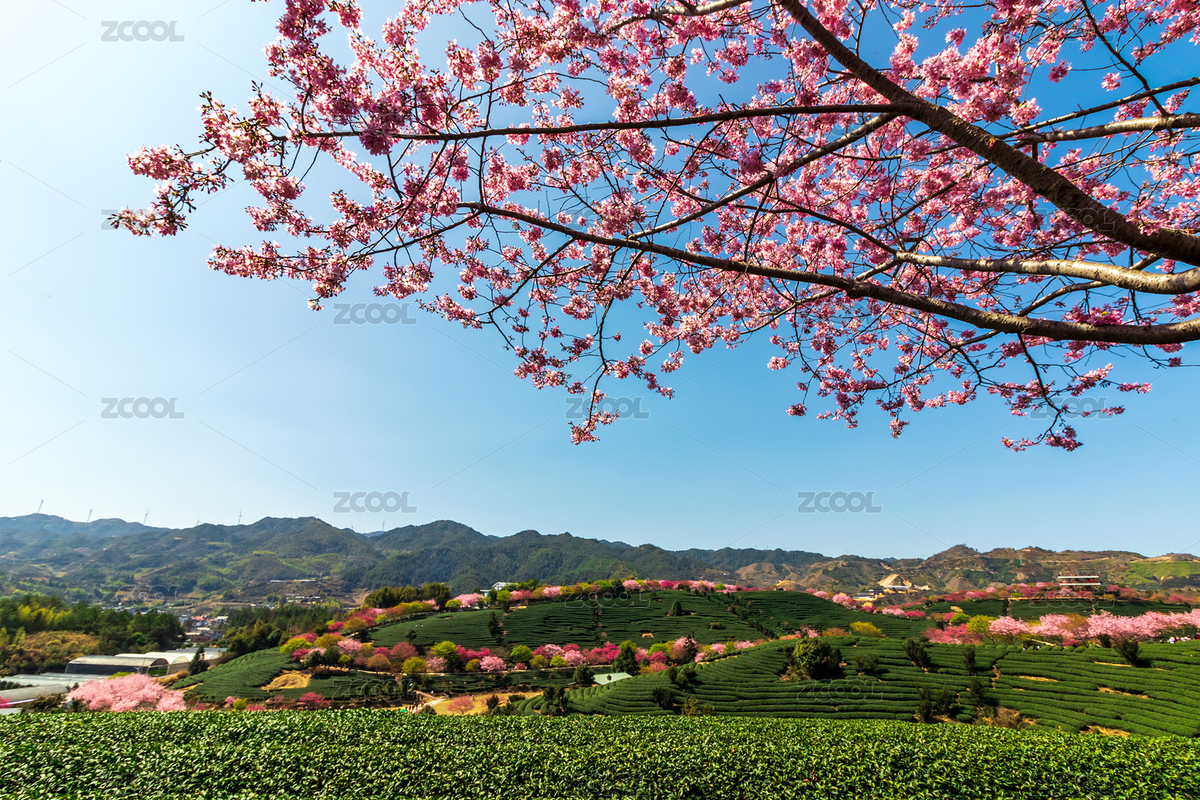 中国,福建,龙岩,漳平,永福樱花园,春天,天空,田园,田野,山村