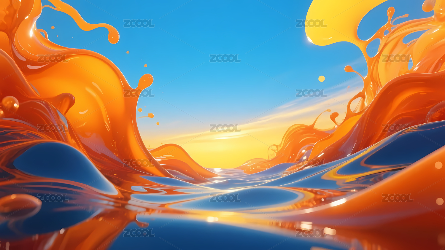 橙黄液体飞溅蓝色背景
