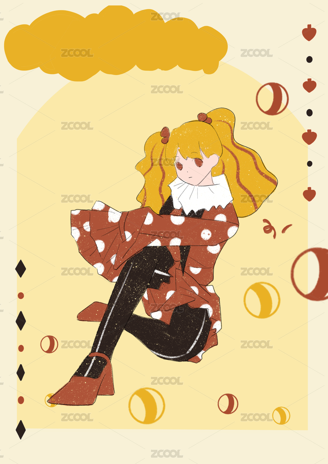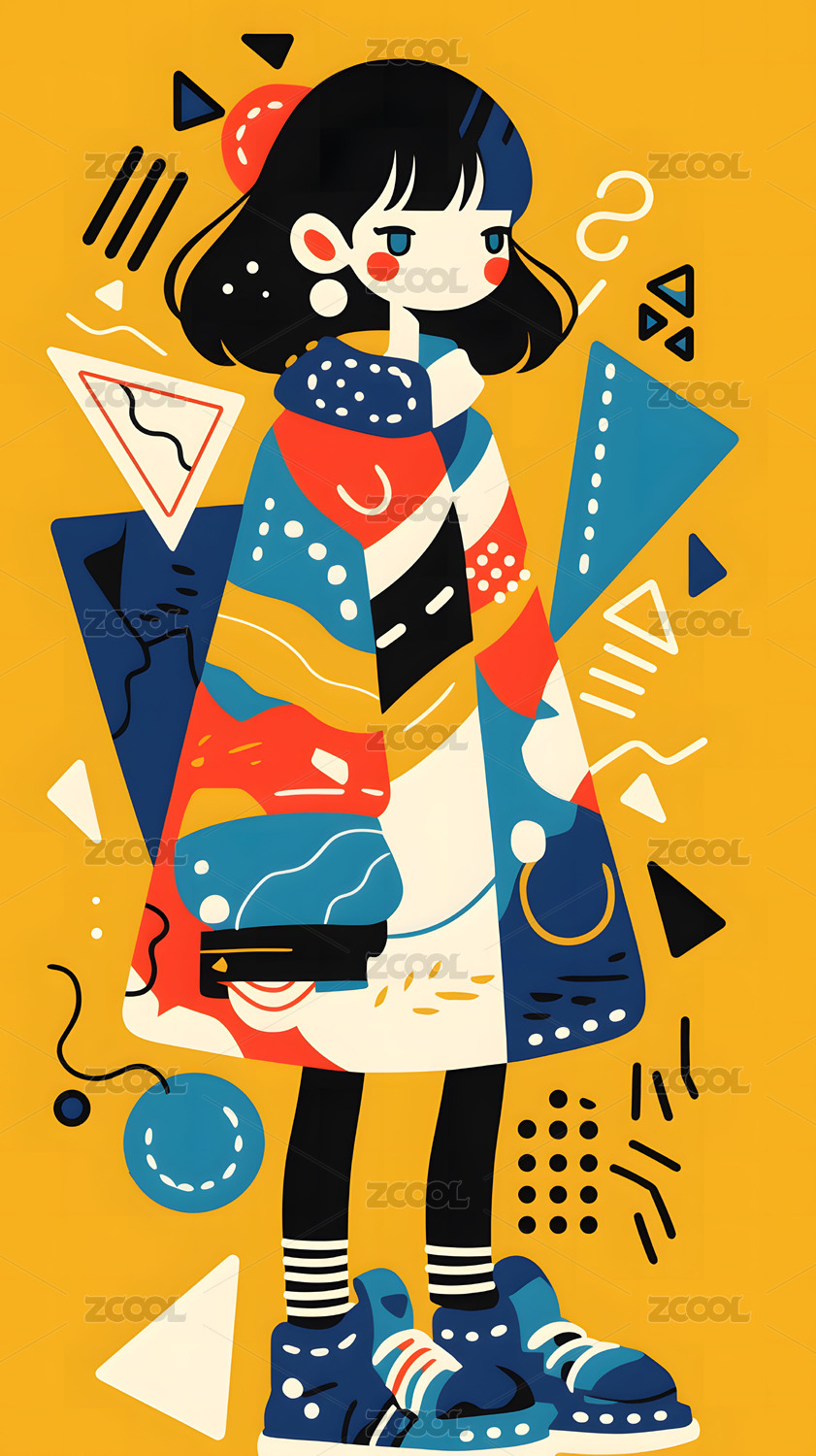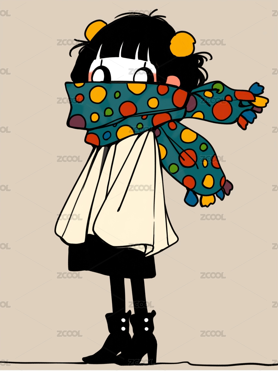 可爱,咖啡,涂鸦风,女孩,插画,长发