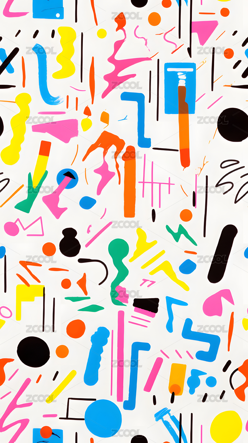 卡通,人物,图形,几何,形状,设计,明亮,图案,复古,纹理