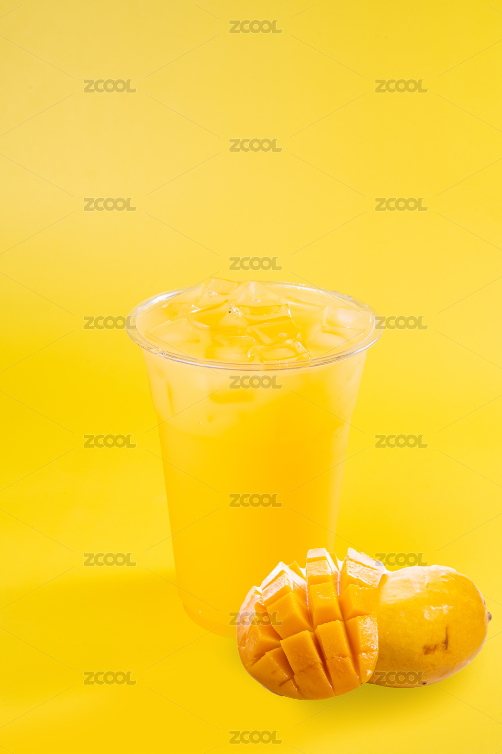 芒果,奶盖,奶茶,水果,黄色,蓝色