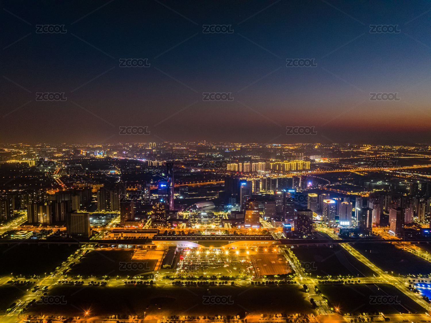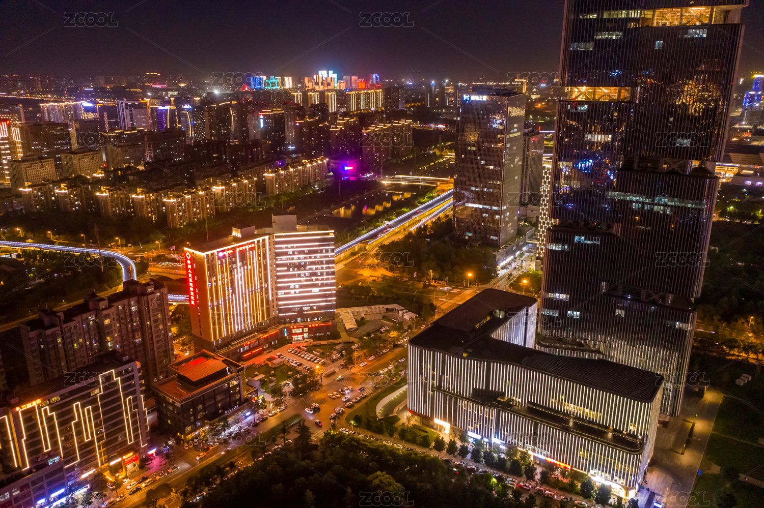 航拍郑州绿地双子塔夜景城市天际线都市地标