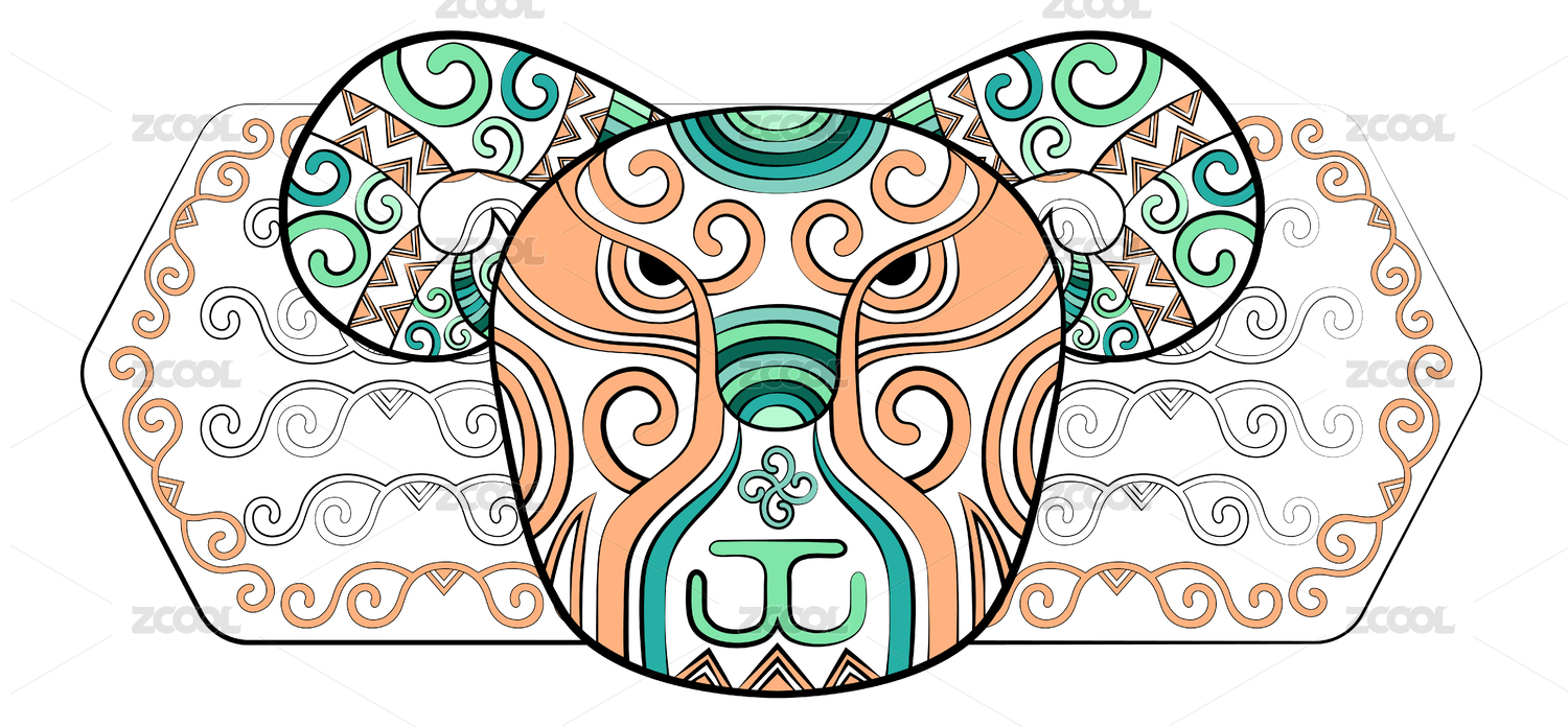 潮流中国风羊十二生肖时尚印花纹样矢量插画
