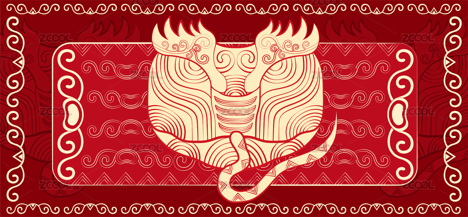 蛇十二生肖国潮喜庆中国红传统纹样矢量插画