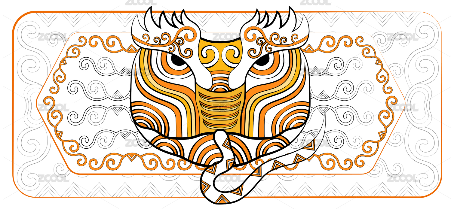 十二生肖虎潮流金色中国风传统纹样矢量插画