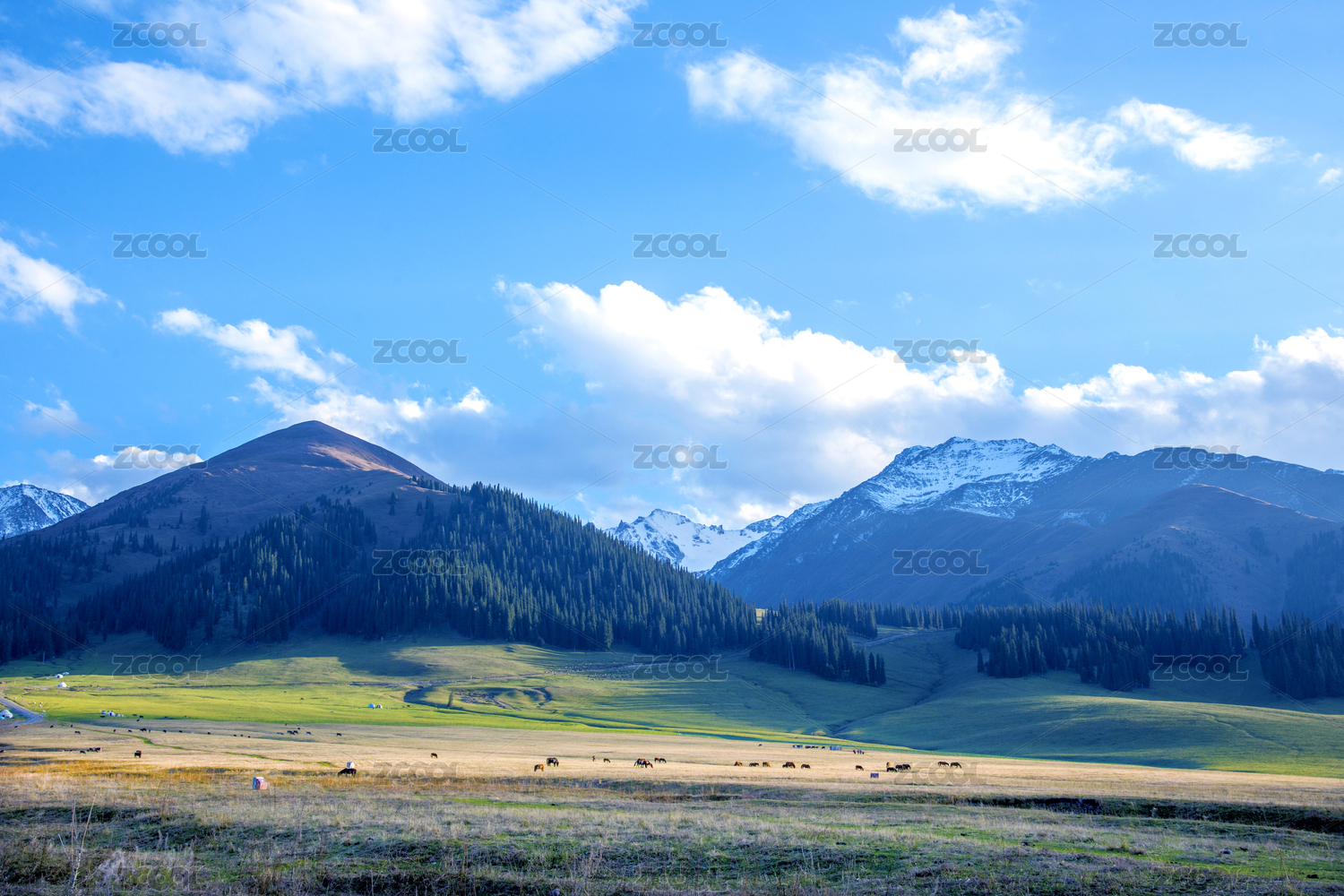 中国新疆伊犁特克斯琼库石台天山草原风光