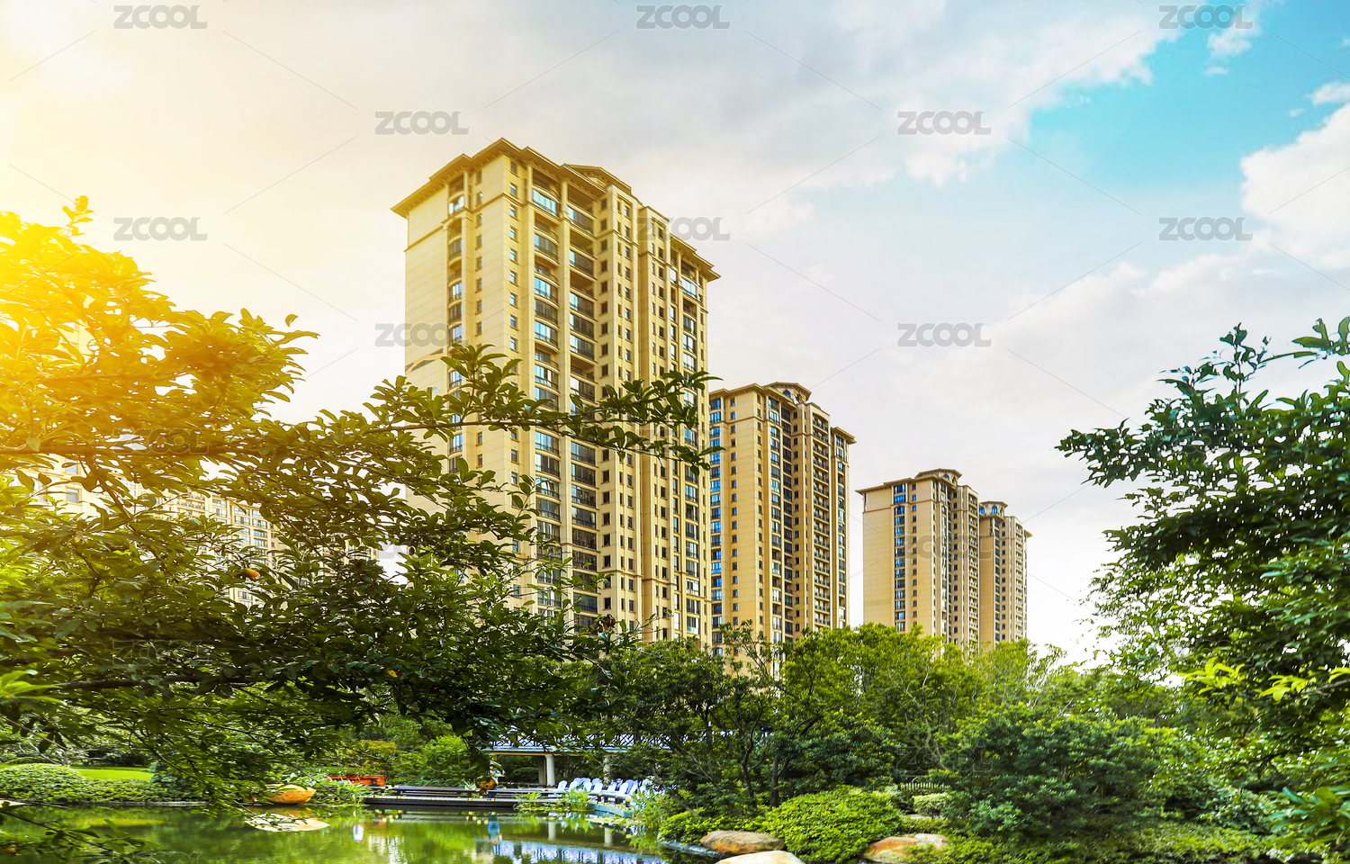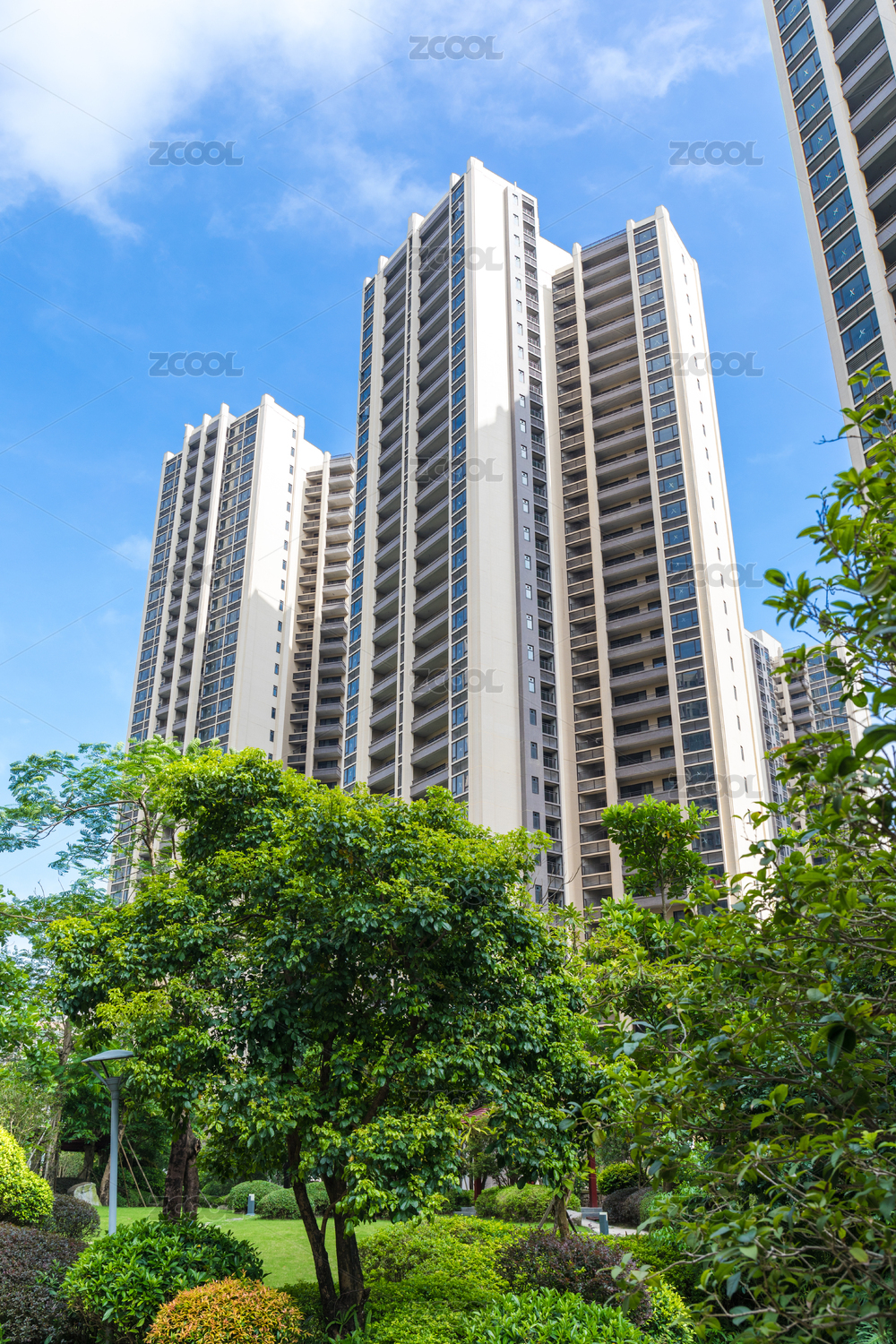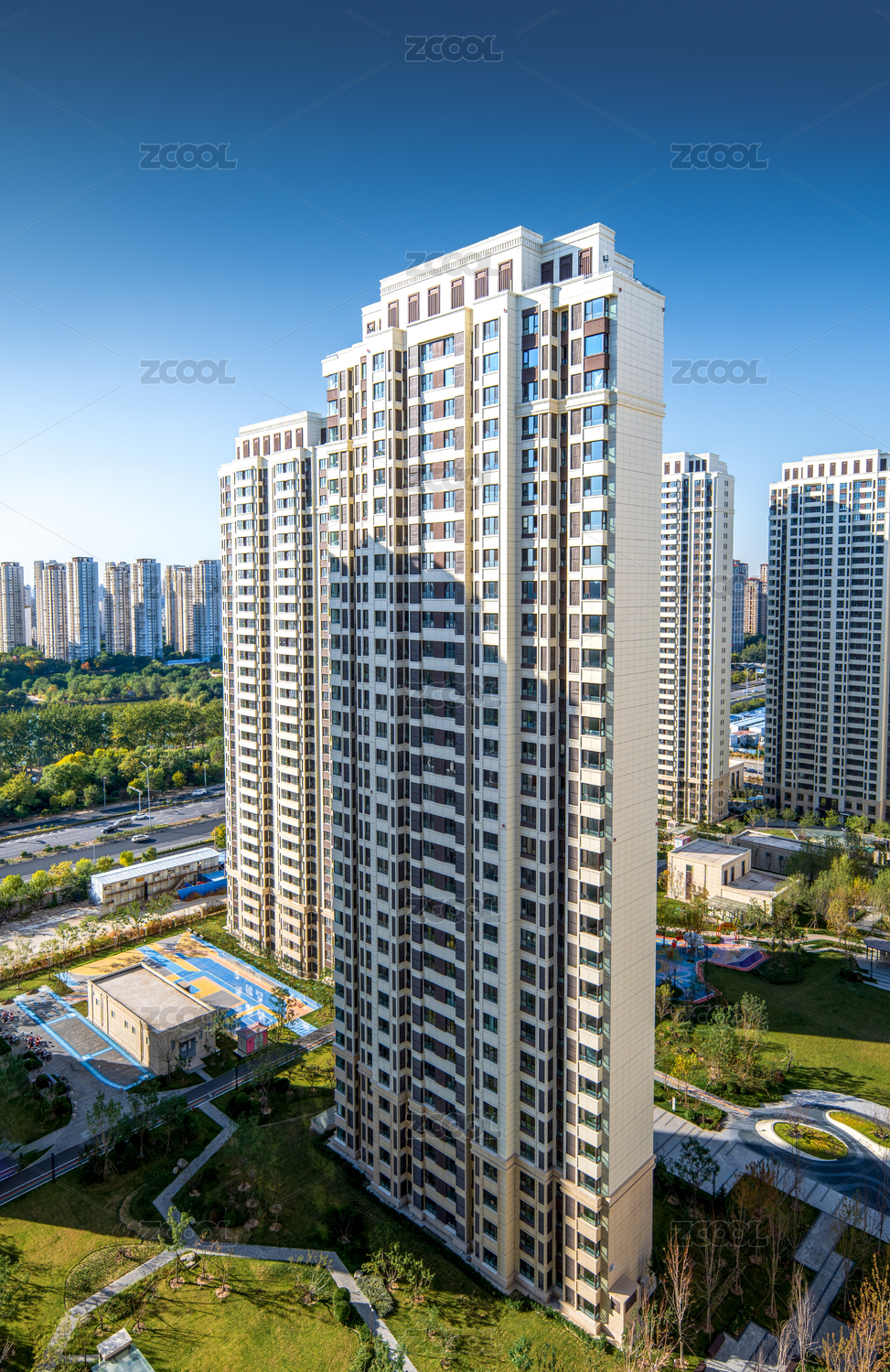 现代化高层住宅区的晴朗景象