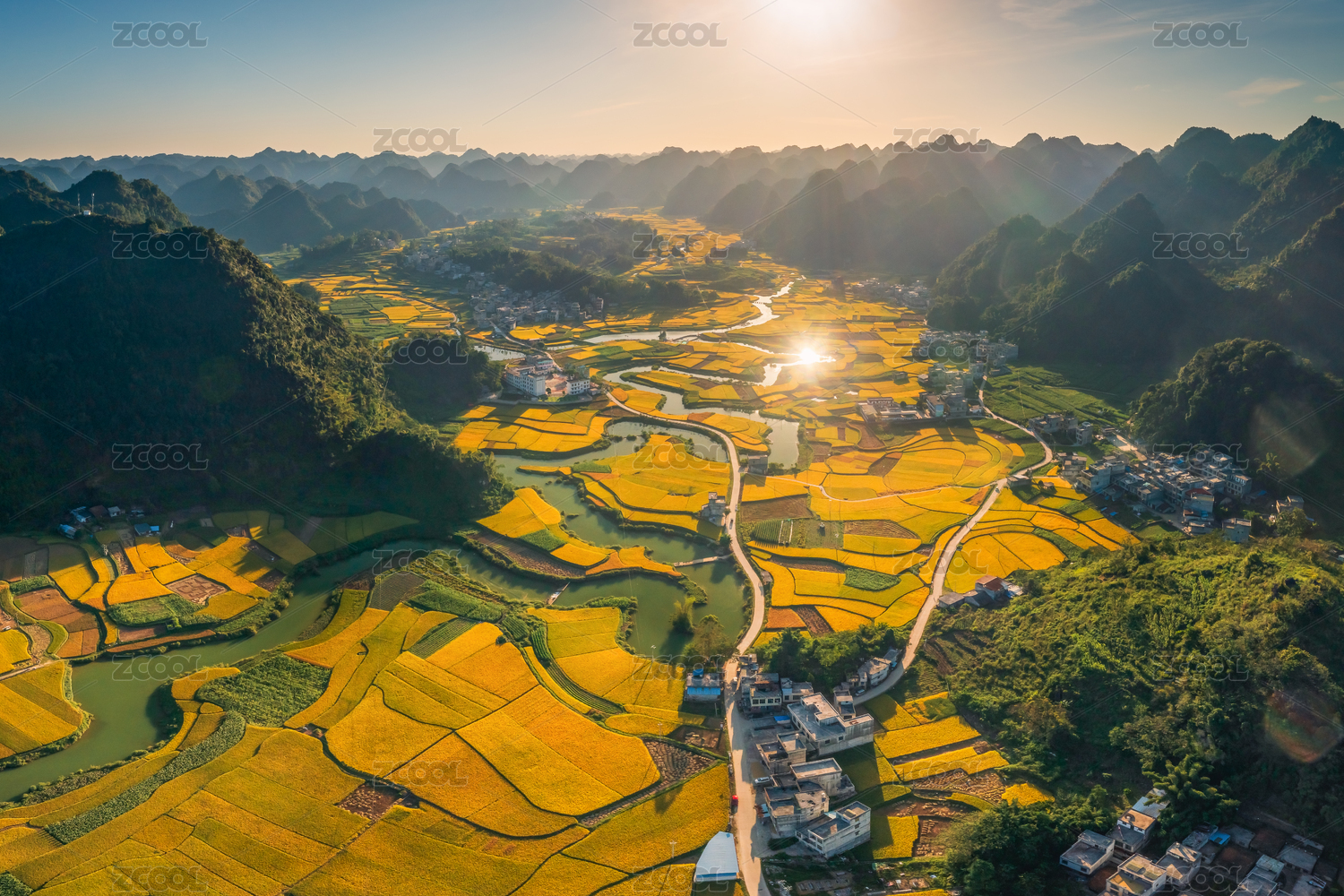 广西德保县喀斯特地貌秋天稻田丰收田园风光