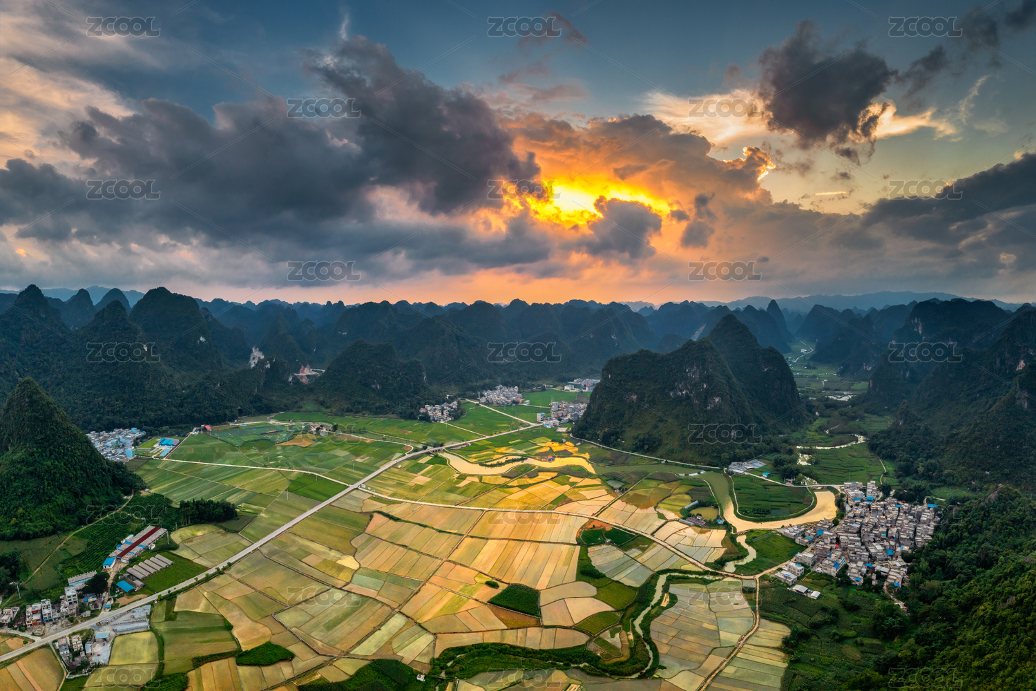 桂林山水田心村状元桥农田日出喀斯特地貌