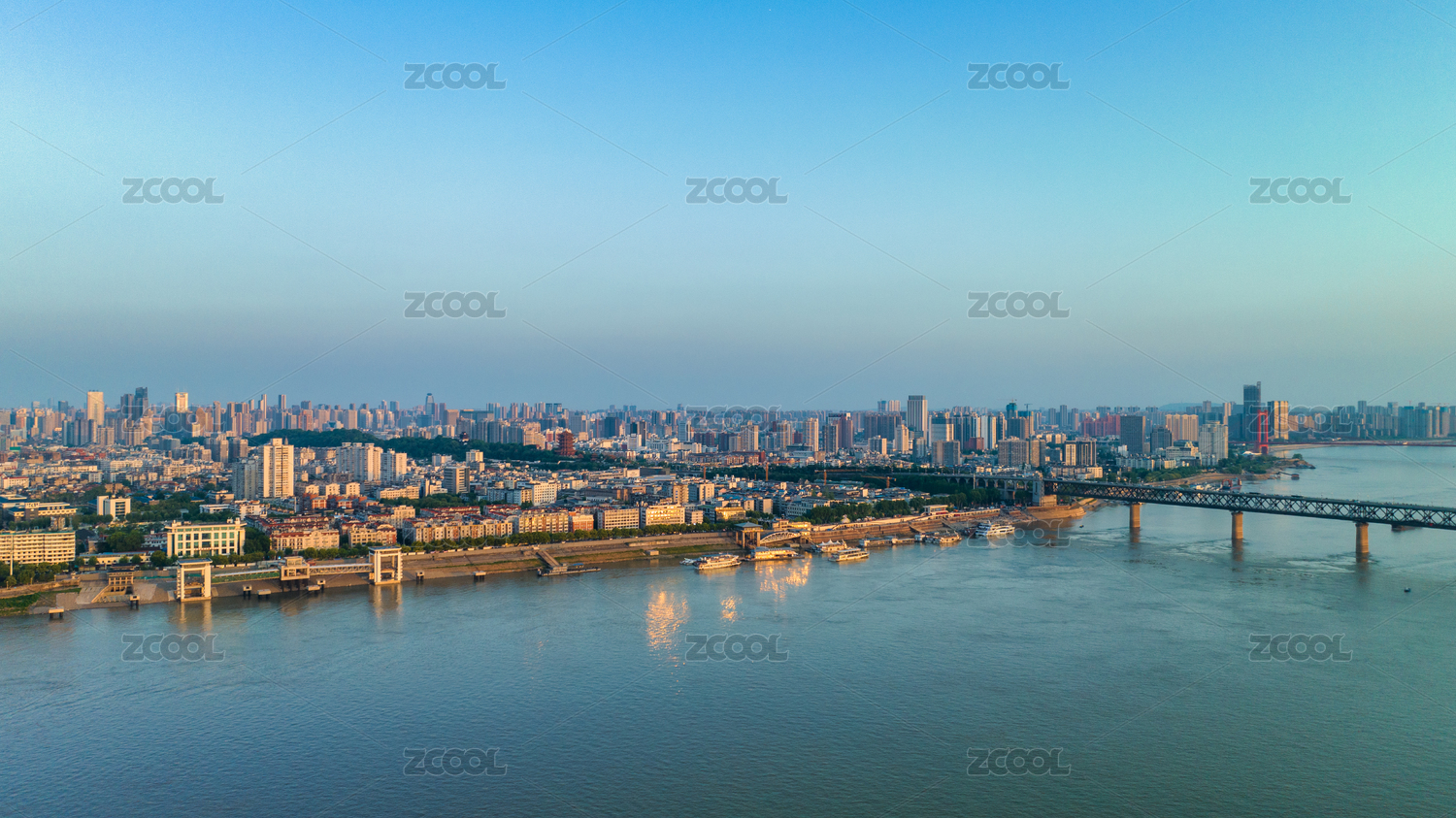 中国湖北武汉长江大桥清晨航拍