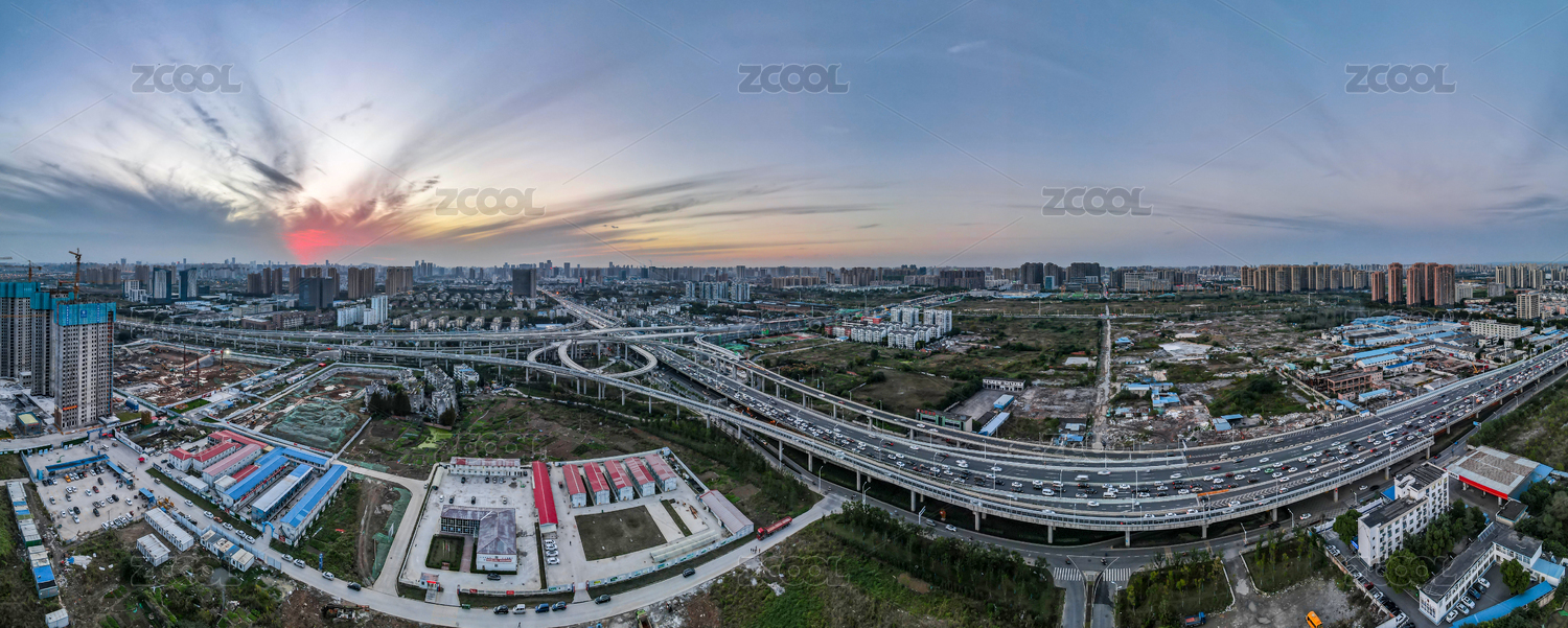 中国安徽合肥西二环长江西路桥航拍全景日落