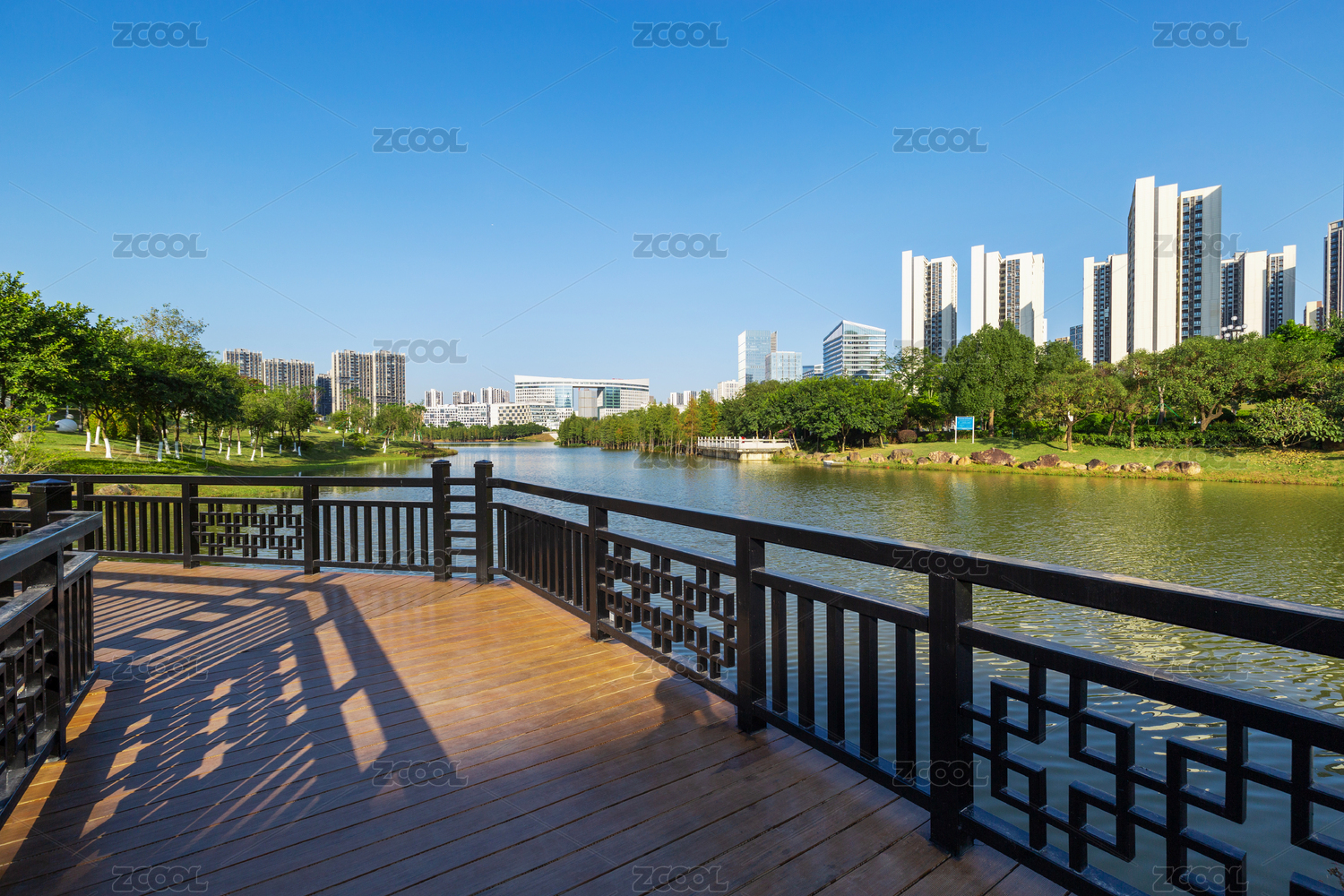 中国广州市南沙区凤凰湖公园环境优美的湖景楼盘住宅区