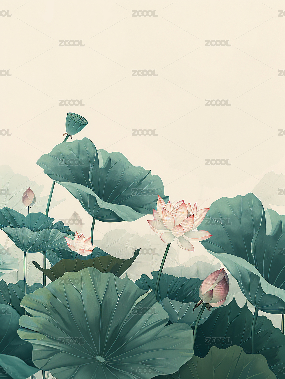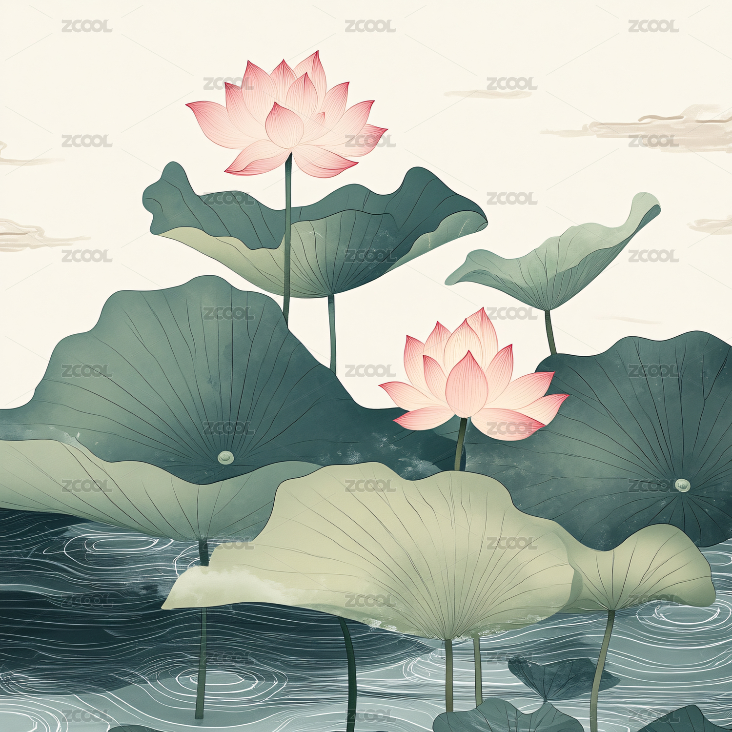 清新的中国风荷花艺术插画