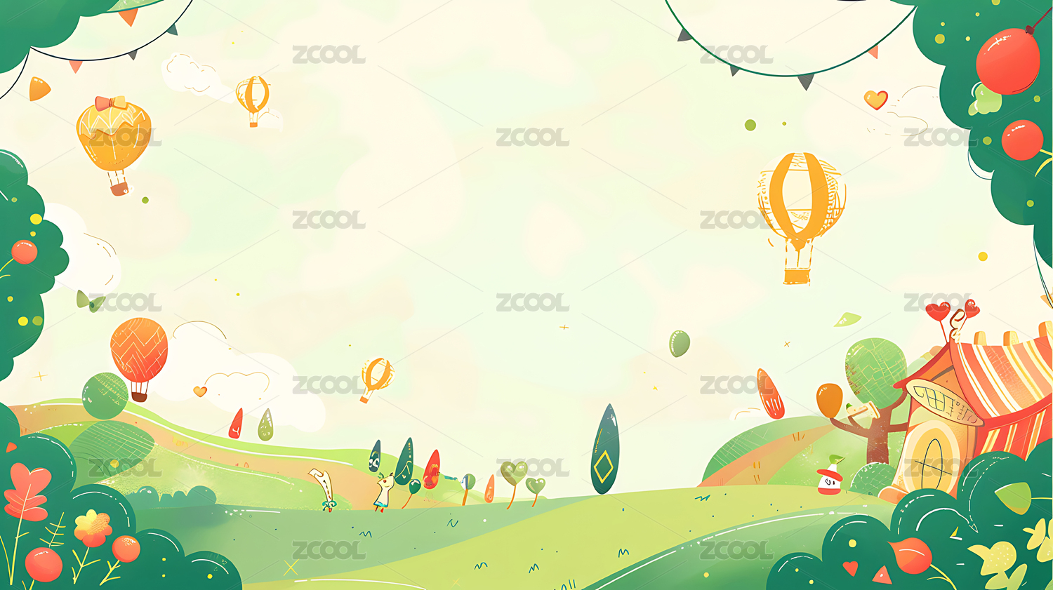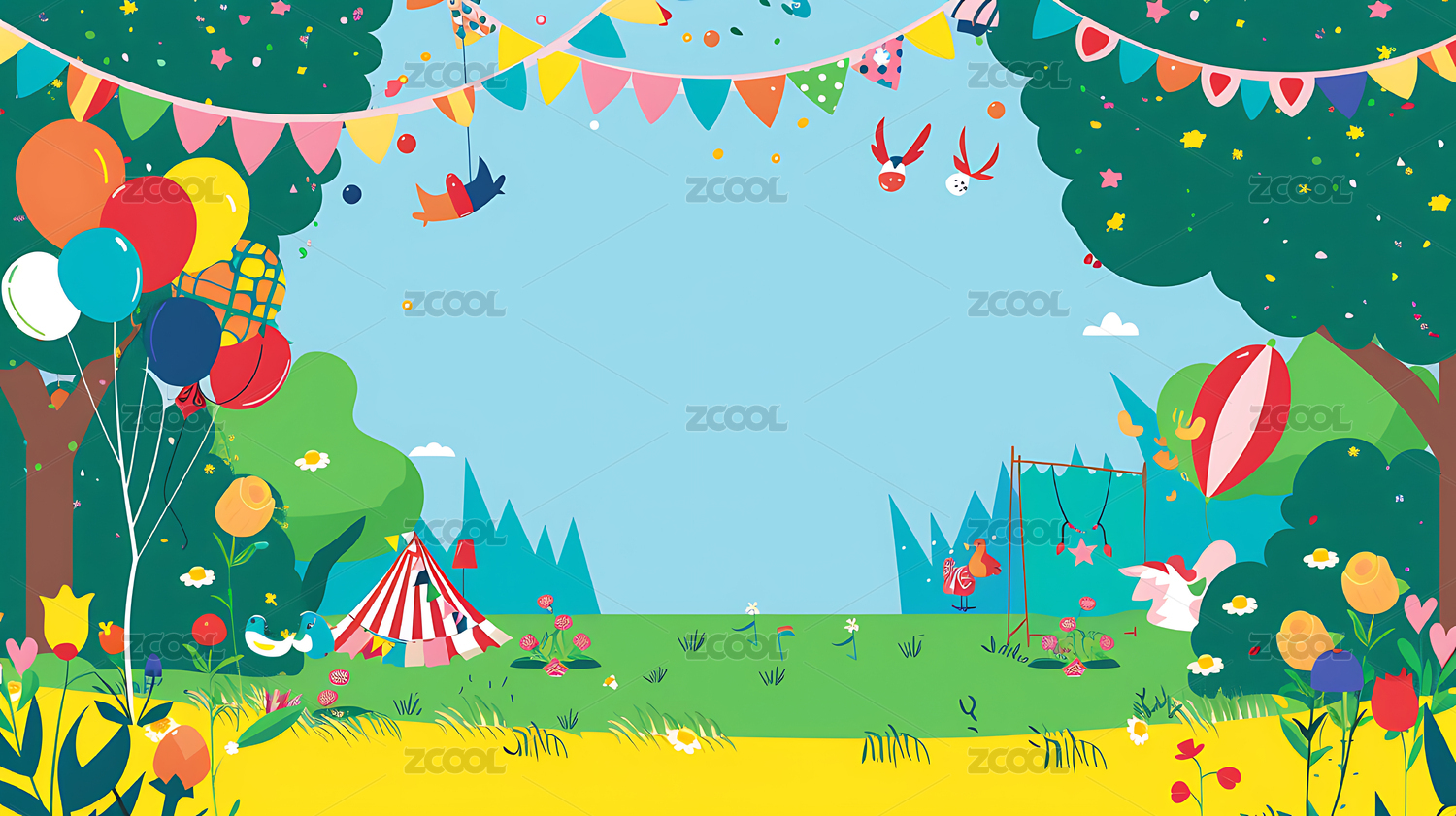 可爱卡通六一儿童节彩旗玩耍场地背景