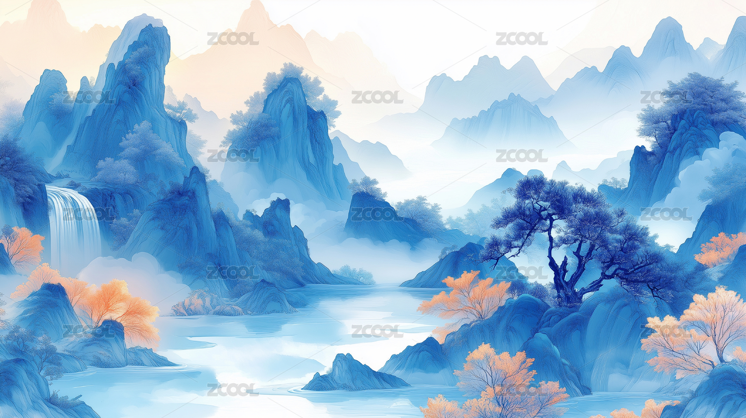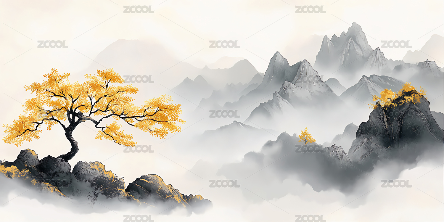 金色山峦水墨蓝图