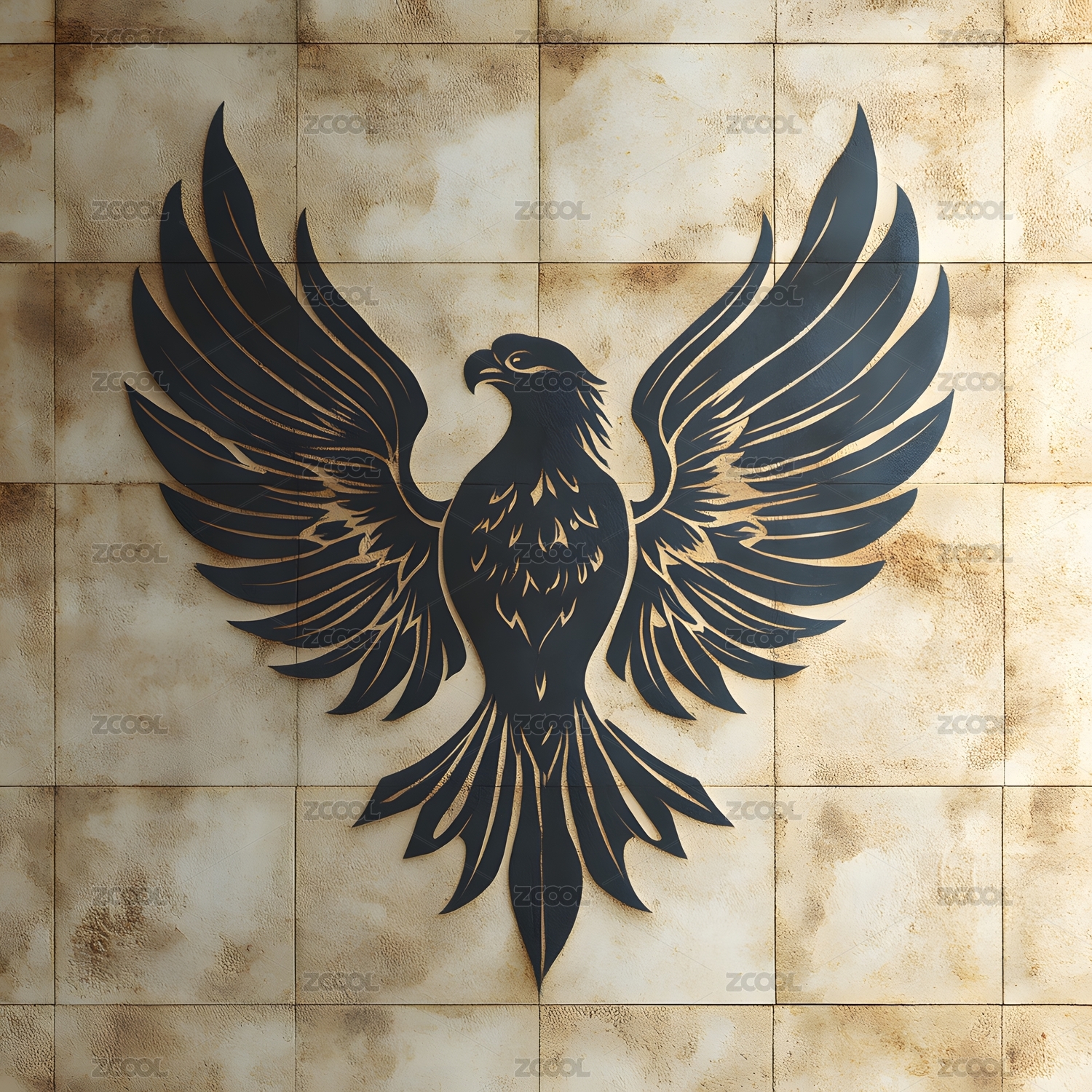 展翅黑凤凰插画图案