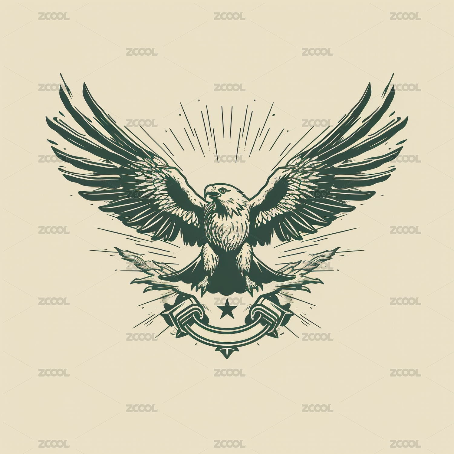 复古风格展翅飞翔的老鹰徽章头像图案