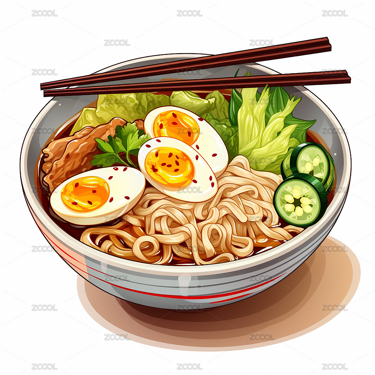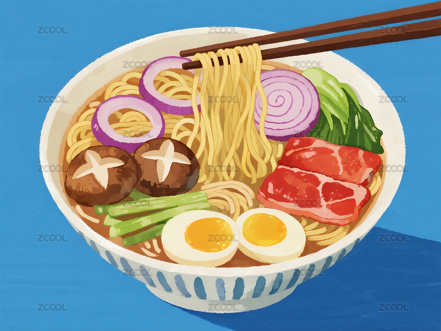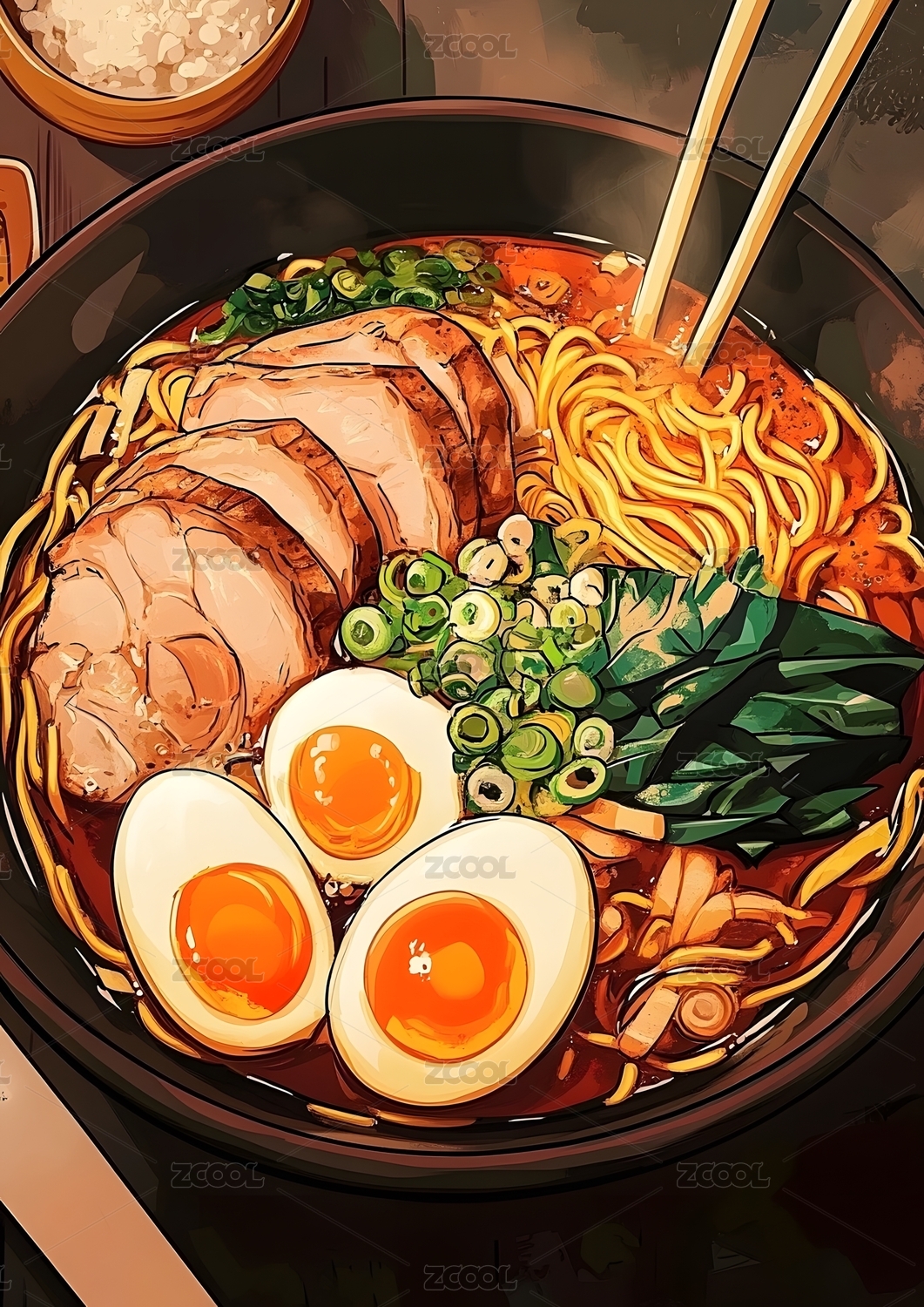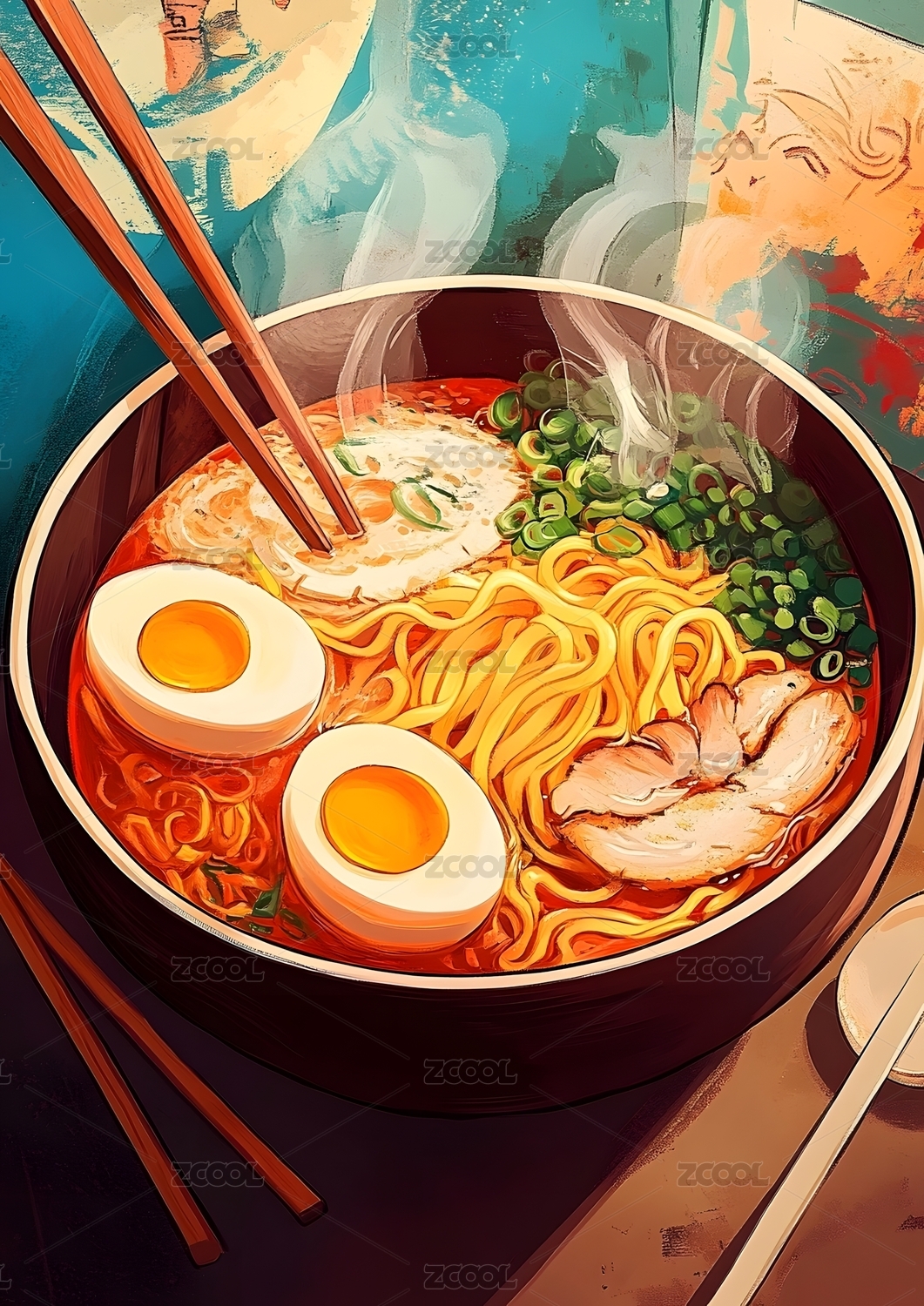 AIGCFG,复古,日漫,插画,插图,怀旧,80年代,日式,拉面,餐饮