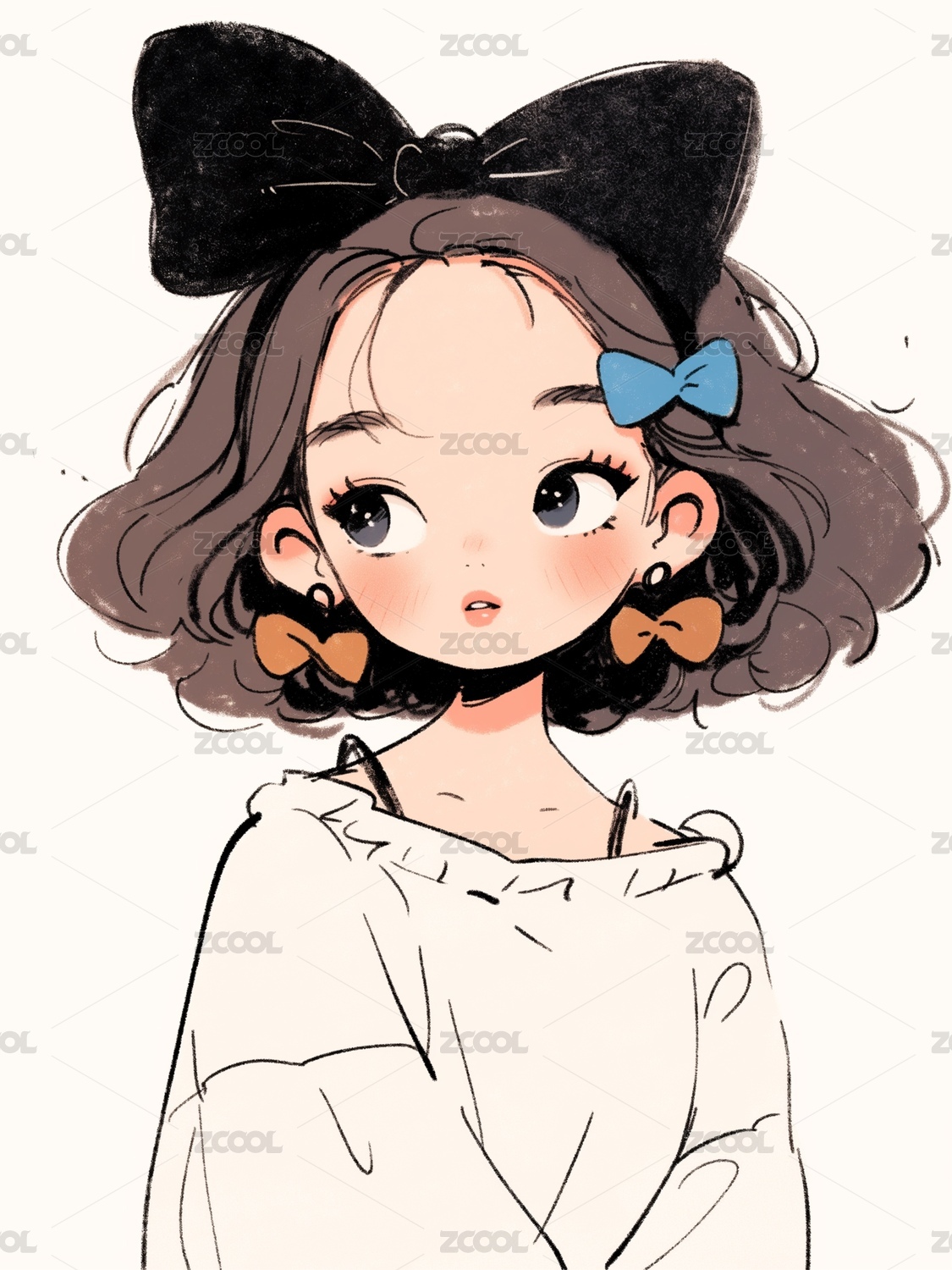 复古日漫人物头像长发红色蝴蝶结大眼睛女孩