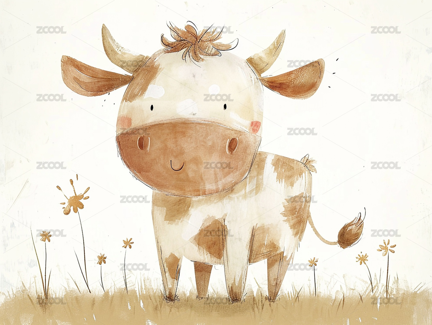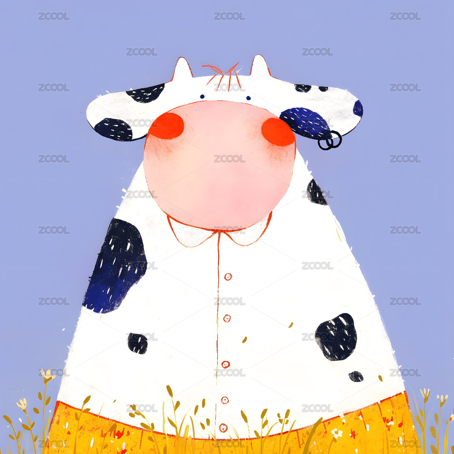 一只可爱的卡通风格奶牛插画